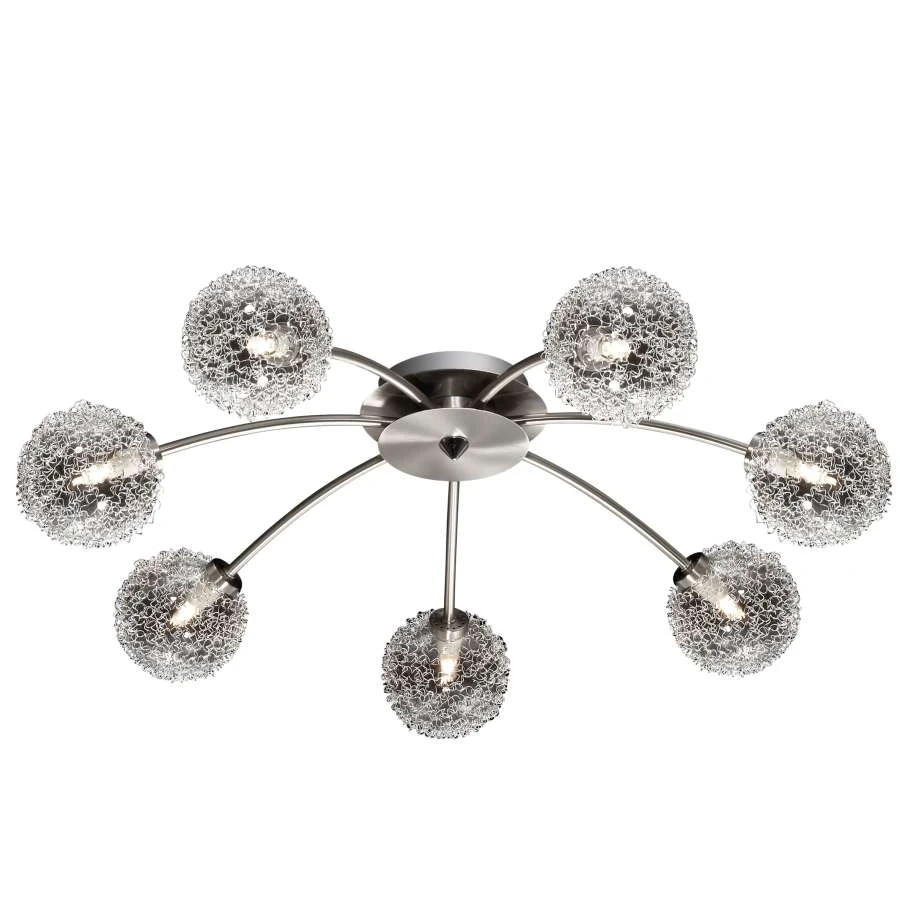 Потолочная люстра Odeon Light Roxby 2460/7C от Odeon Light, подходит для гостиной, в стиле современный. Материал — металл, цвет никель, плафон из алюминий, цвет плафона белый, форма плафона — шар. Модель имеет 7 ламп, цоколь G9, мощность 280 Вт. Направление света — вниз. Степень защиты IP20. Габариты: высота 150 мм, ширина 700 мм, диаметр 700 мм. Коллекция Roxby.