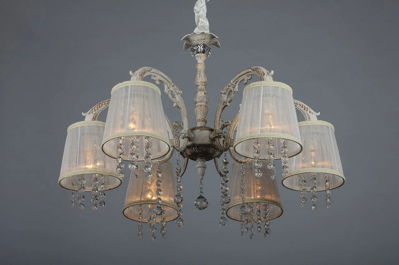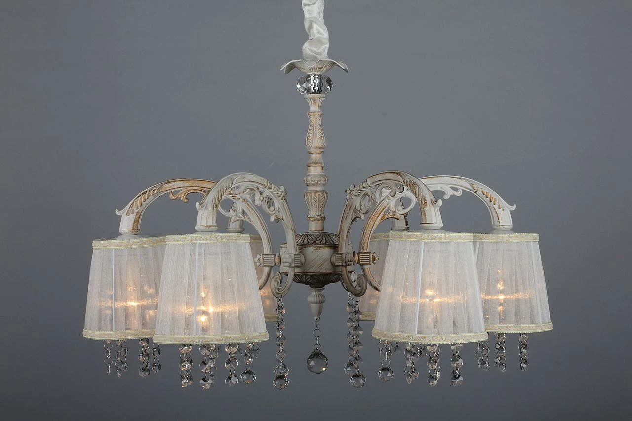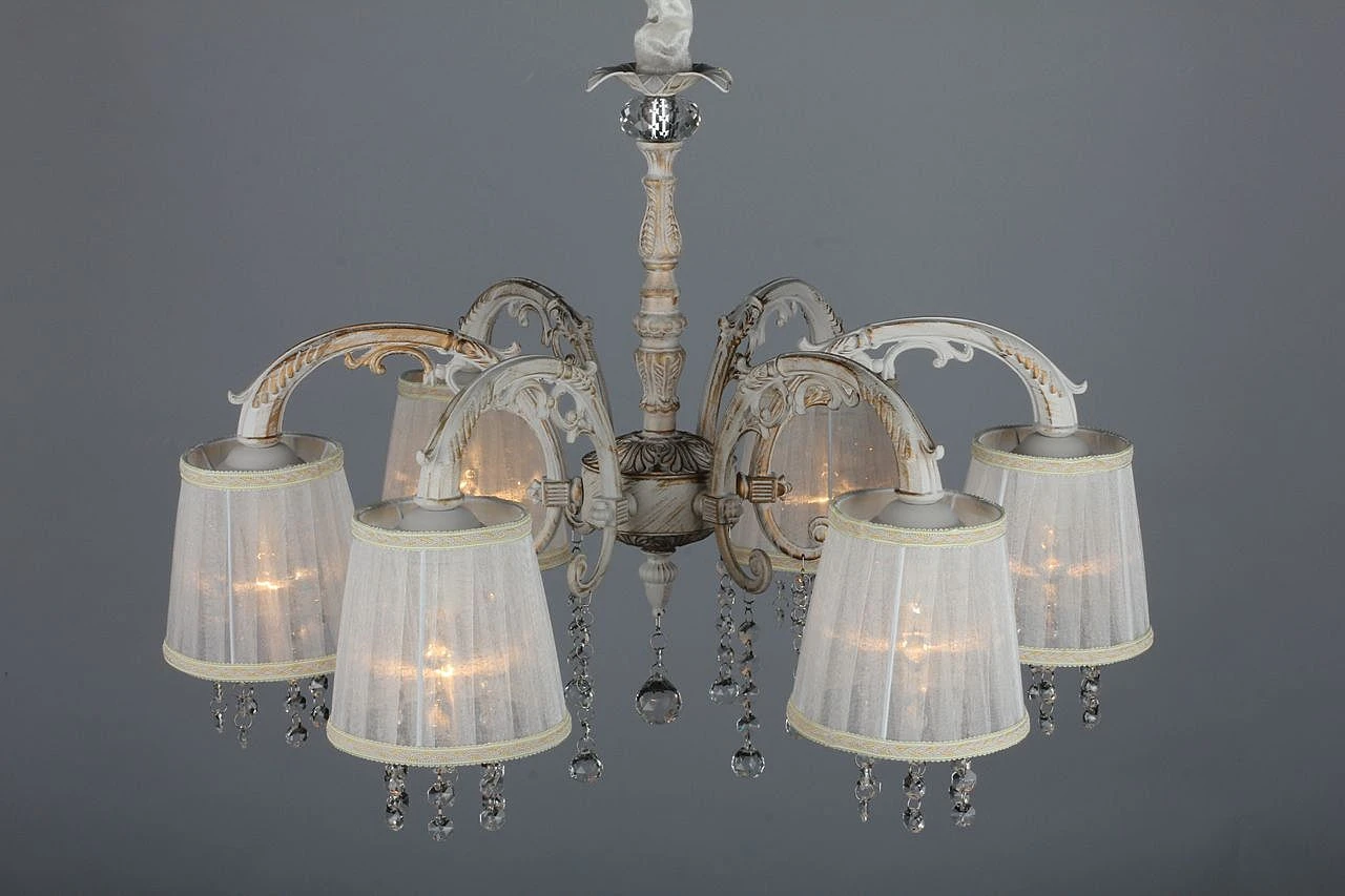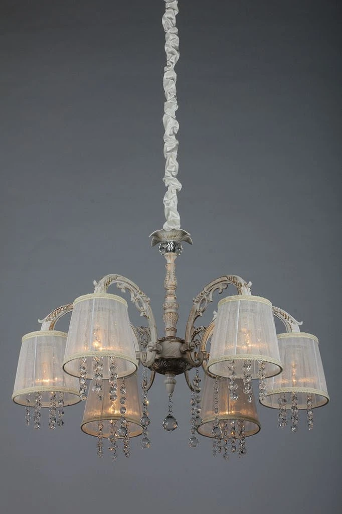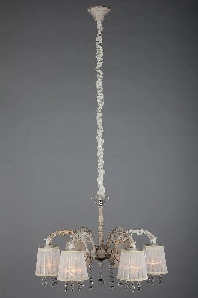 Подвесная люстра Omnilux Bologna OML-30003-06 от Omnilux, подходит для спальни, в стиле прованс. Материал — металл, цвет белое золото, плафон из ткань, цвет плафона белый, форма плафона — круглый абажур. Модель имеет 6 ламп, цоколь E14, мощность 240W. Поддержка диммера. Габариты: высота 1400 мм, ширина 700 мм, диаметр 700 мм. Декор — хрустальные подвески, возможность регулировки высоты — Есть.