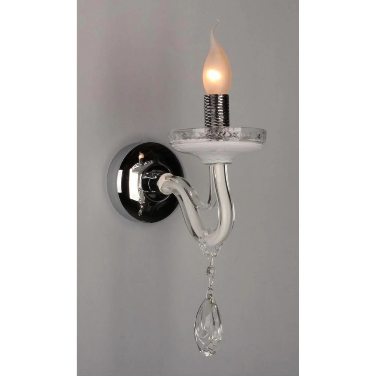 Настенное бра Omnilux Salerno OML-34401-01 от Omnilux, подходит для гостиной, в стиле современный. Материал — стекло, цвет белый, цвет плафона прозрачный. Модель имеет 1 лампу, цоколь E14, мощность 60W. Поддержка диммера. Габариты: высота 300 мм, ширина 110 мм. Декор — хрустальные подвески.
