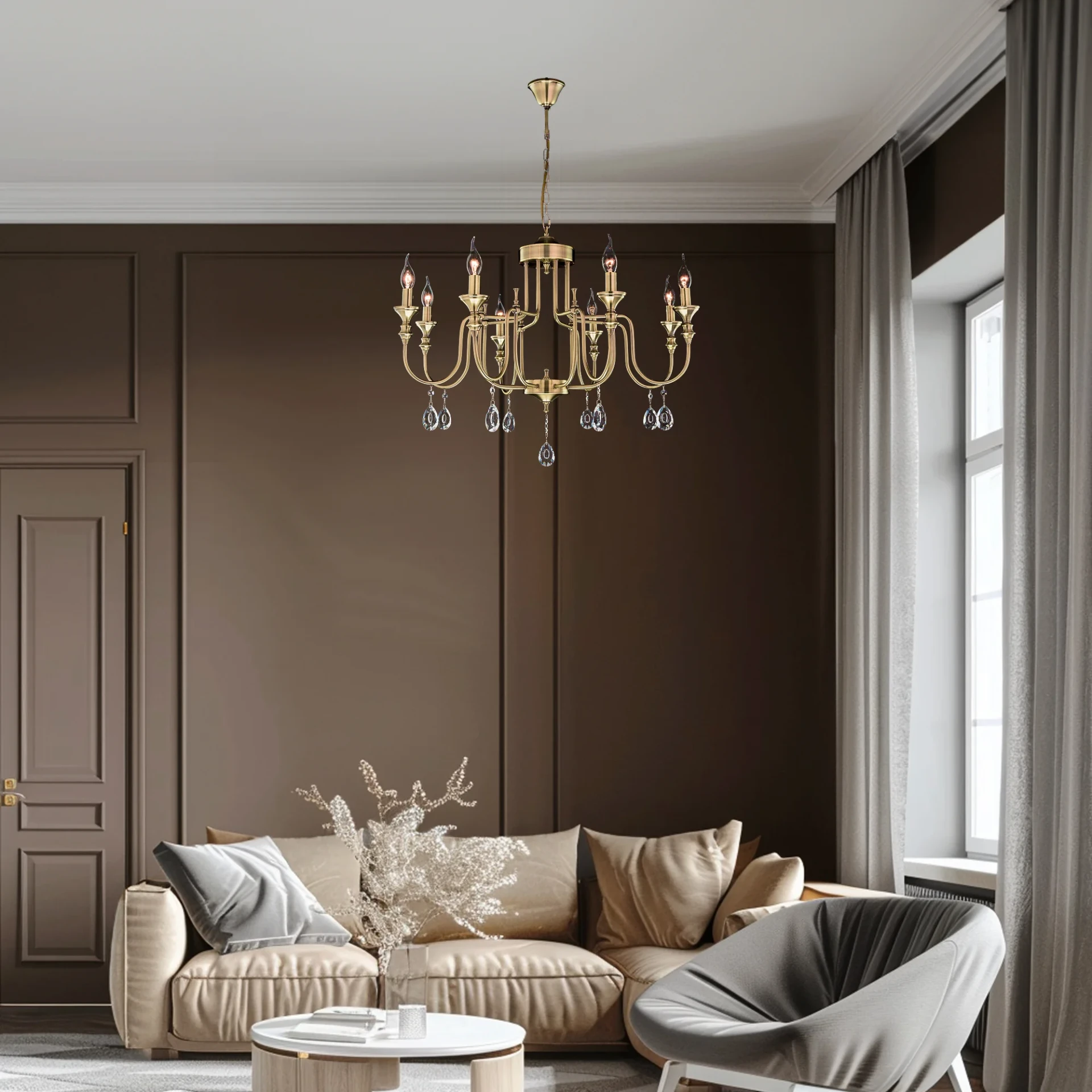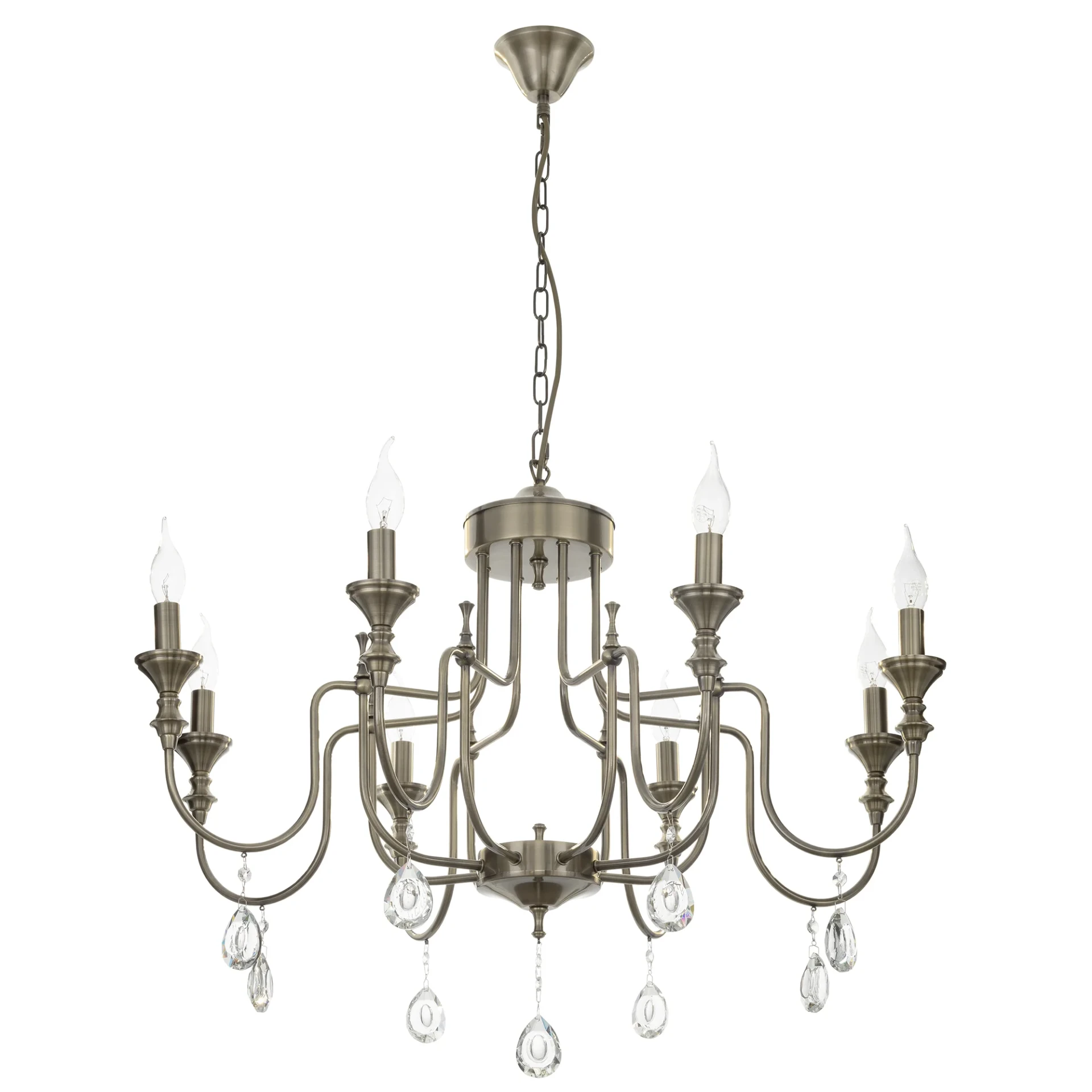 Подвесная люстра Citilux Рига CL437183 от Citilux, подходит для гостиной, в стиле классика. Материал — металл, цвет бронза. Модель имеет 8 ламп, цоколь E14, мощность 480 Вт. Крепление — крюк. Габариты: высота 1300 мм, ширина 810 мм, диаметр 810 мм. Декор — хрустальные подвески, коллекция Рига.