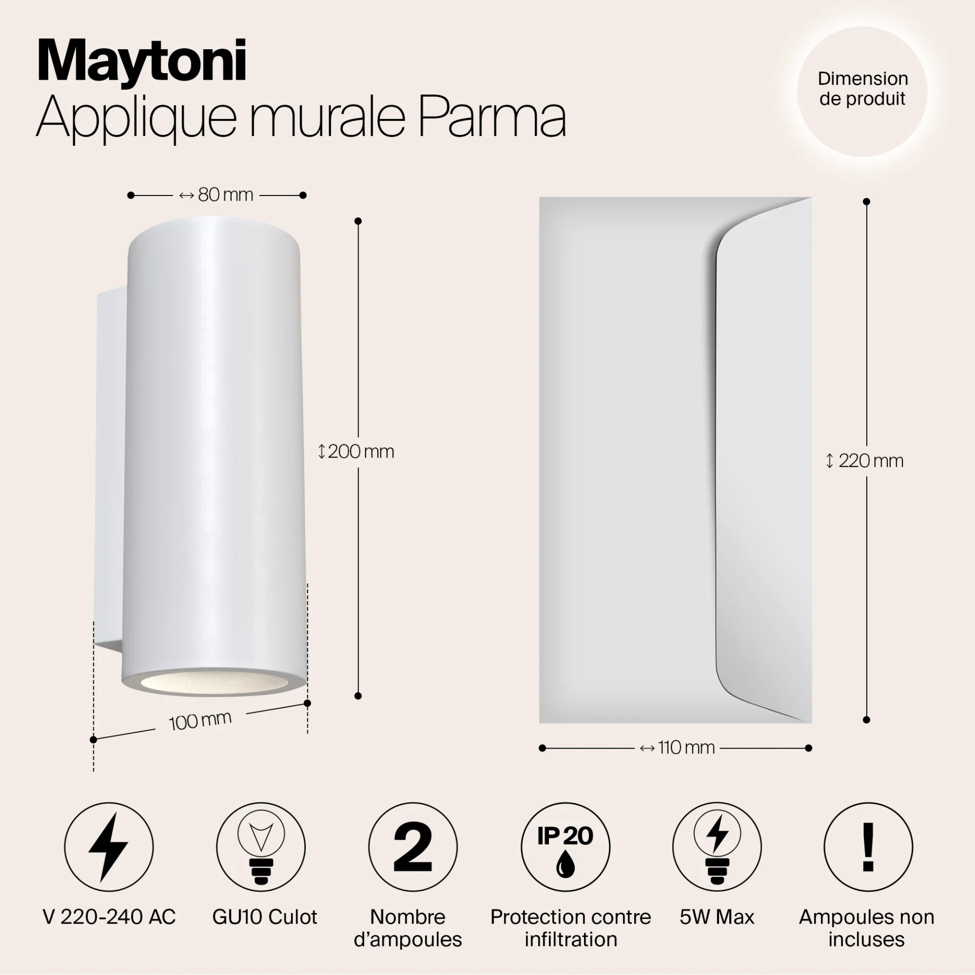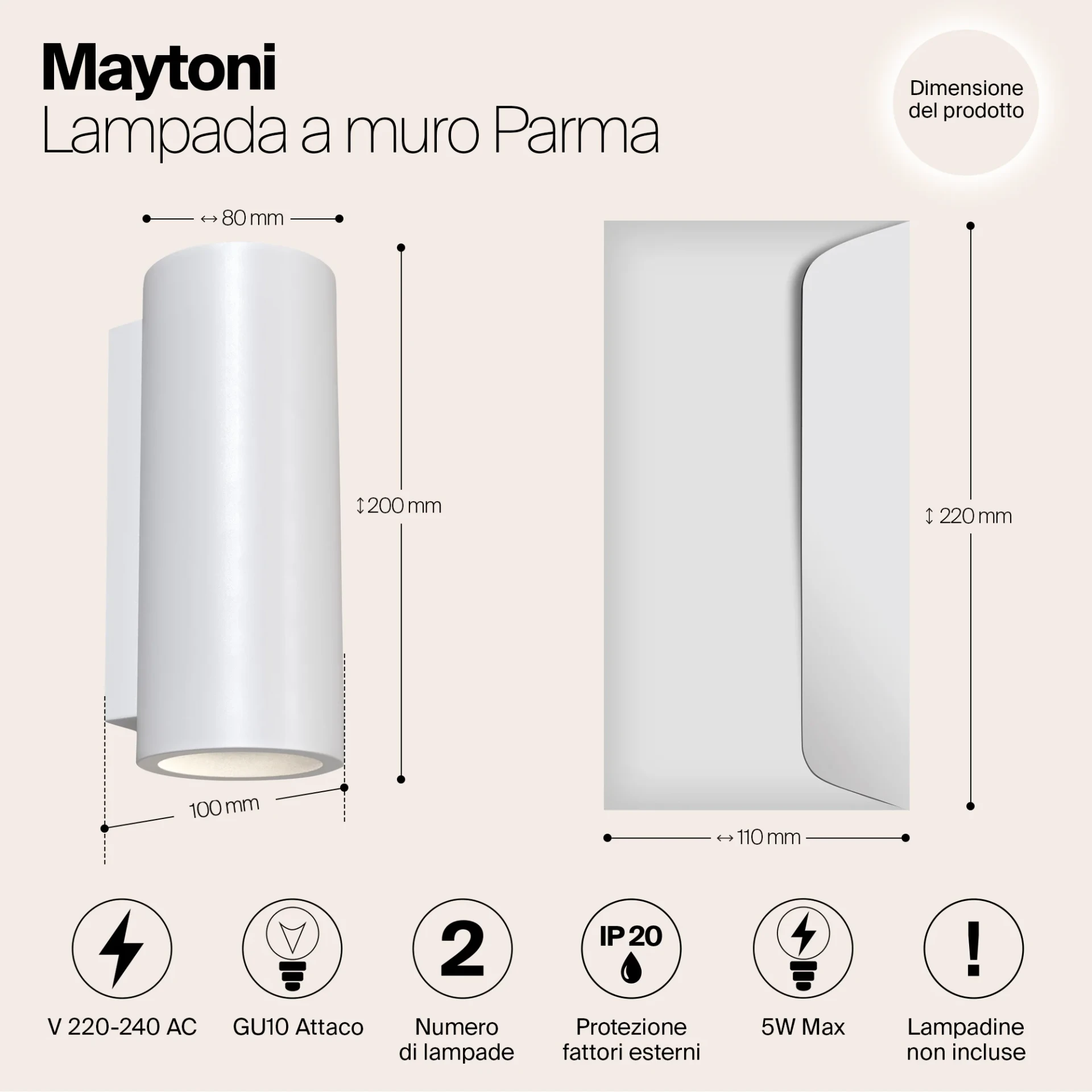 Настенное бра Maytoni Parma C191-WL-02-W от Maytoni, подходит для гостиной, в стиле хай-тек. Материал — гипс, цвет белый, форма плафона — цилиндр. Модель имеет 2 лампы, цоколь GU10, мощность 10 Вт. Направление света — вниз. Степень защиты IP20. Габариты: высота 200 мм, ширина 80 мм, глубина 100 мм. Коллекция Parma.