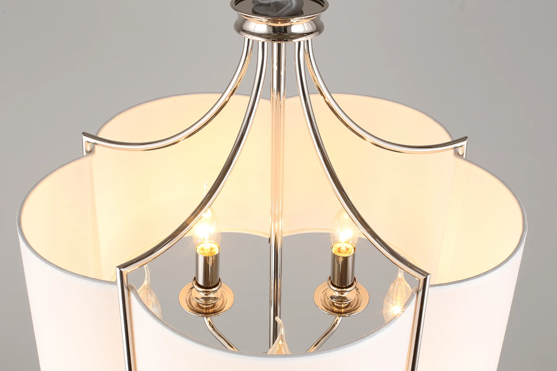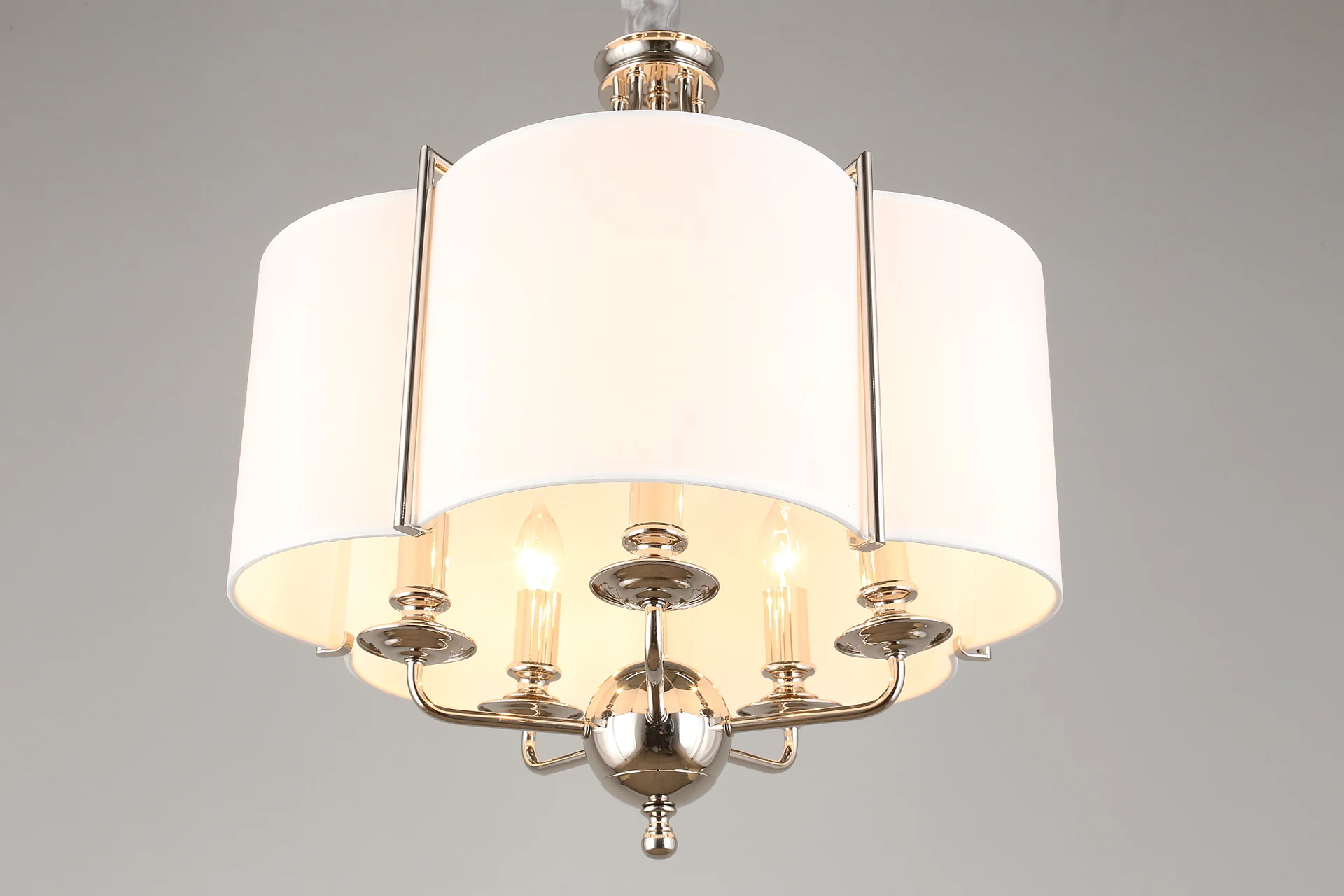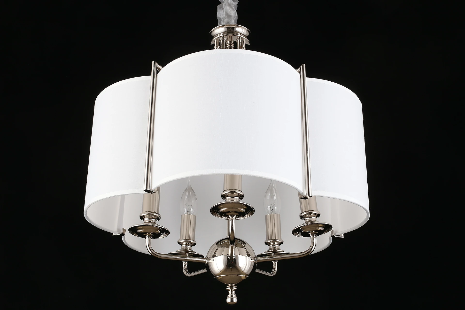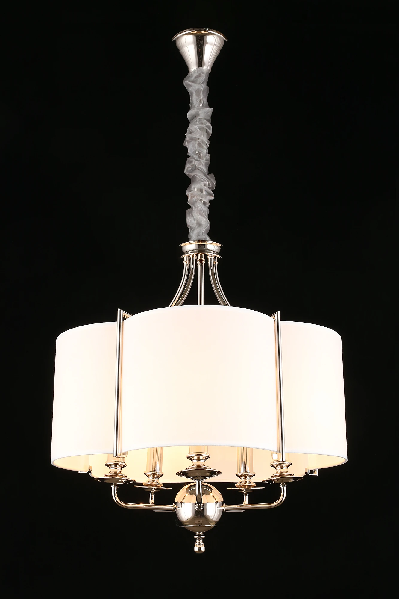Подвесная люстра Aployt Korin APL.613.03.05 от Aployt, подходит для гостиной, в стиле классика, арт-деко. Материал — металл, цвет хром, плафон из ткань, цвет плафона бежевый, форма плафона — цилиндр. Модель имеет 5 ламп, цоколь E14, мощность 200 Вт. Крепление — крюк. Габариты: высота 1500 мм, ширина 500 мм, диаметр 500 мм. Коллекция Korin, световой поток — 2100.