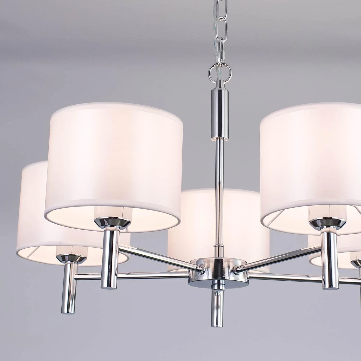 Подвесная люстра Citilux Аврора CL463150 от Citilux, подходит для гостиной, для спальни, в стиле хай-тек. Материал — металл, цвет хром, плафон из текстиль, цвет плафона белый, форма плафона — цилиндр. Модель имеет 5 ламп, цоколь E27, мощность 375 Вт. Габариты: высота 1120 мм, ширина 500 мм, диаметр 600 мм.