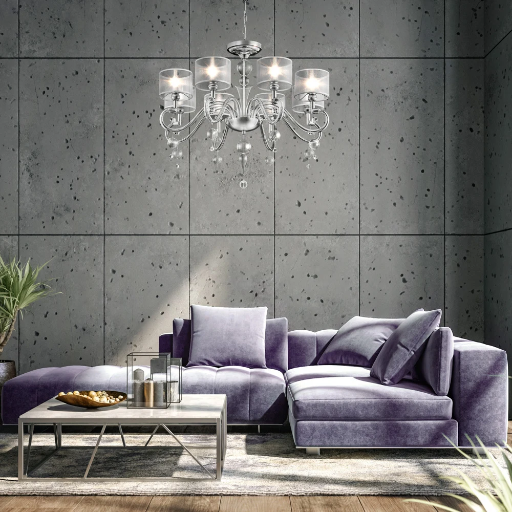 Подвесная люстра Maytoni Bubble Dreams MOD603-08-N от Maytoni, подходит для гостиной, для спальни, в стиле современный. Материал — металл, цвет хром, плафон из пвх, цвет плафона белые, форма плафона — цилиндр. Модель имеет 8 ламп, цоколь E14, мощность 40 Вт. Крепление — крюк. Габариты: высота 1182 мм, ширина 840 мм, диаметр 840 мм. Декор — хрустальные подвески, коллекция Bubble Dreams.