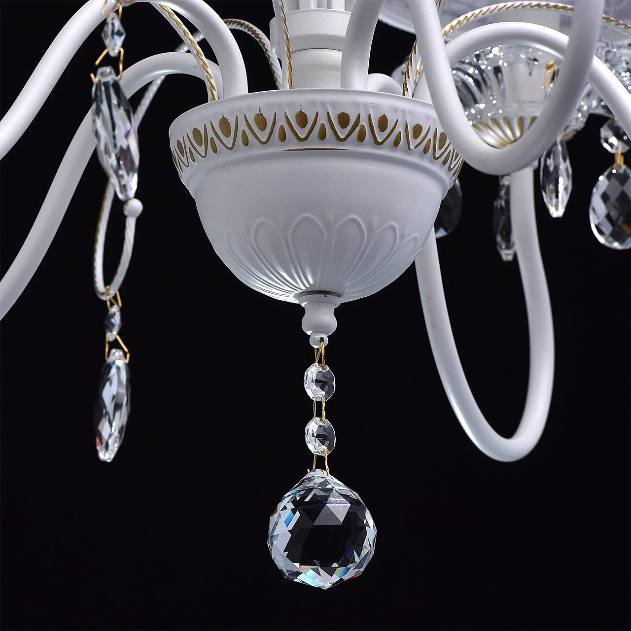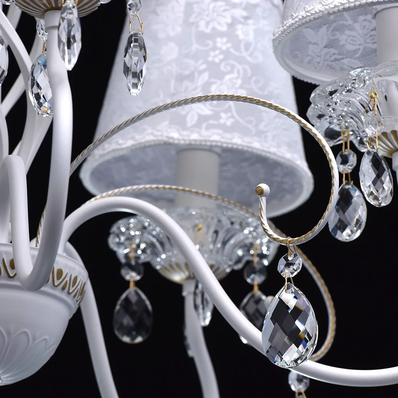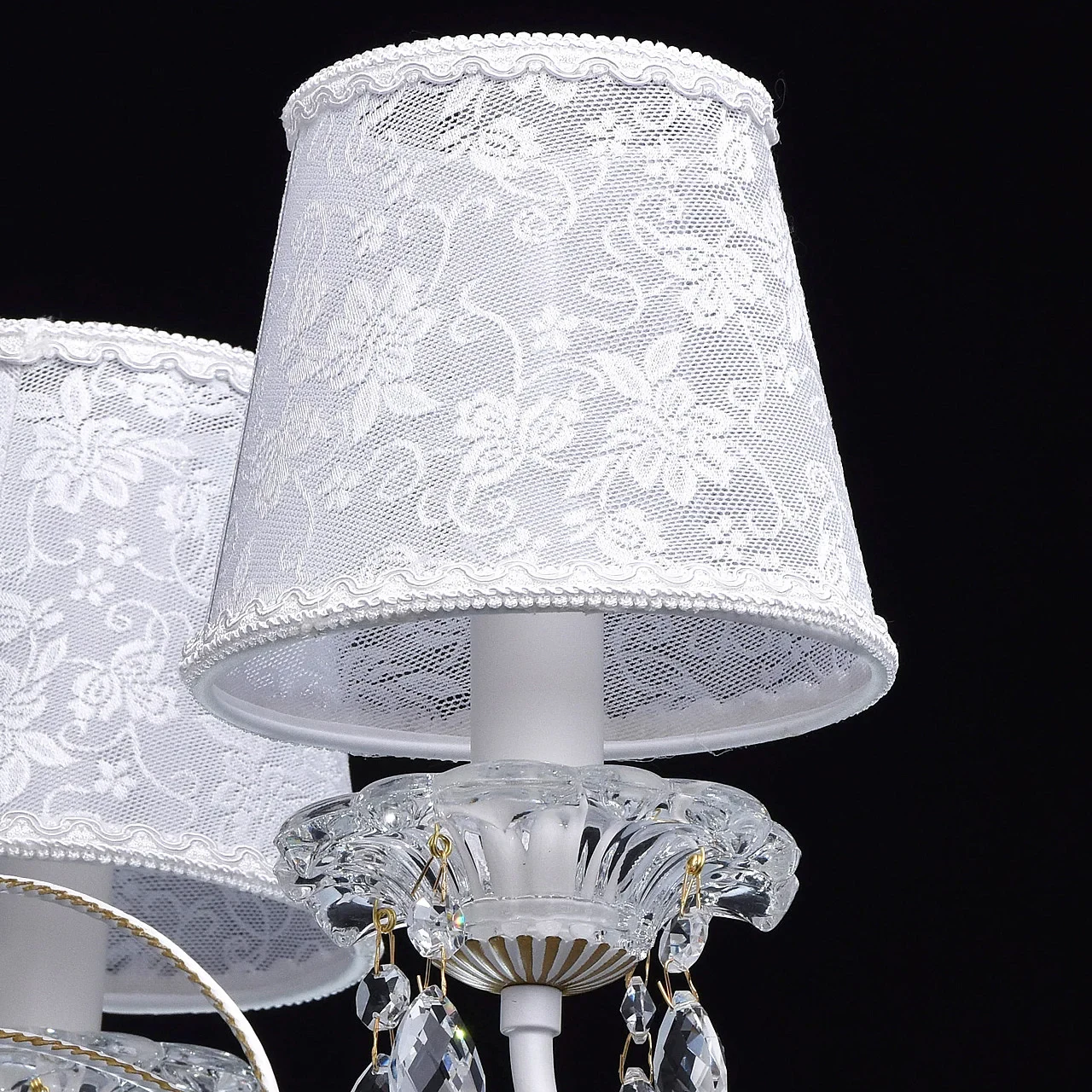 Потолочная люстра MW Light Августина 419010805 от MW-Light, подходит для спальни, в стиле хрусталь. Материал — металл, цвет белый, плафон из ткань, форма плафона — круглый абажур. Модель имеет 5 ламп, цоколь E14. Габариты: высота 580 мм, ширина 650 мм, диаметр 650 мм. Декор — хрустальные подвески.