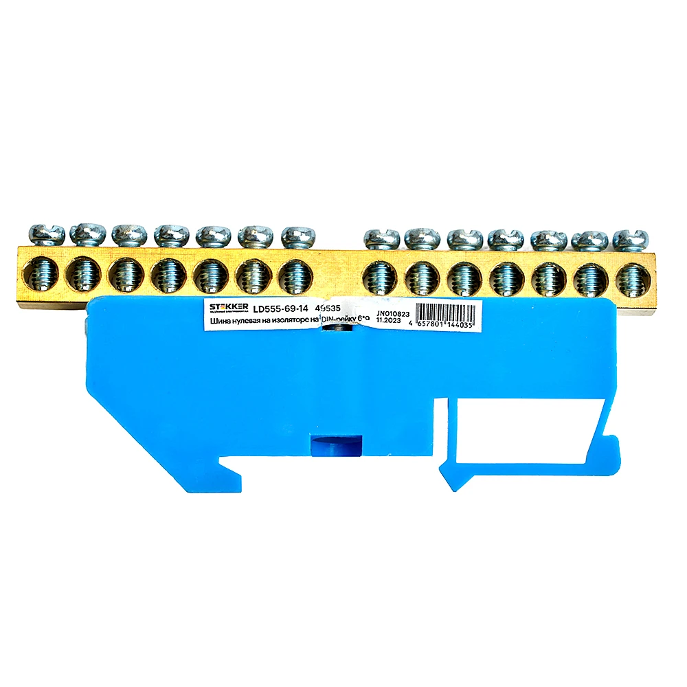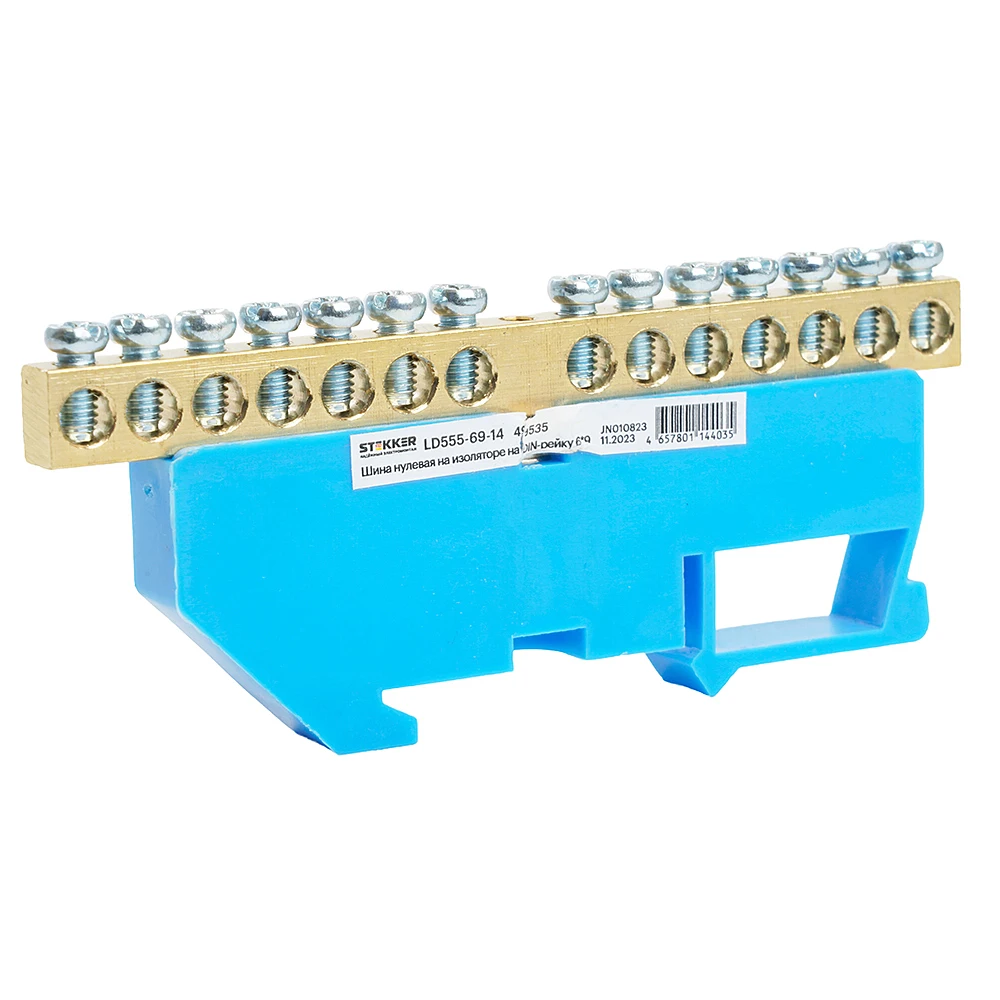 Шина N на изоляторе 6*9 на DIN-рейку 14 выводов Stekker LD555-69-14 49535