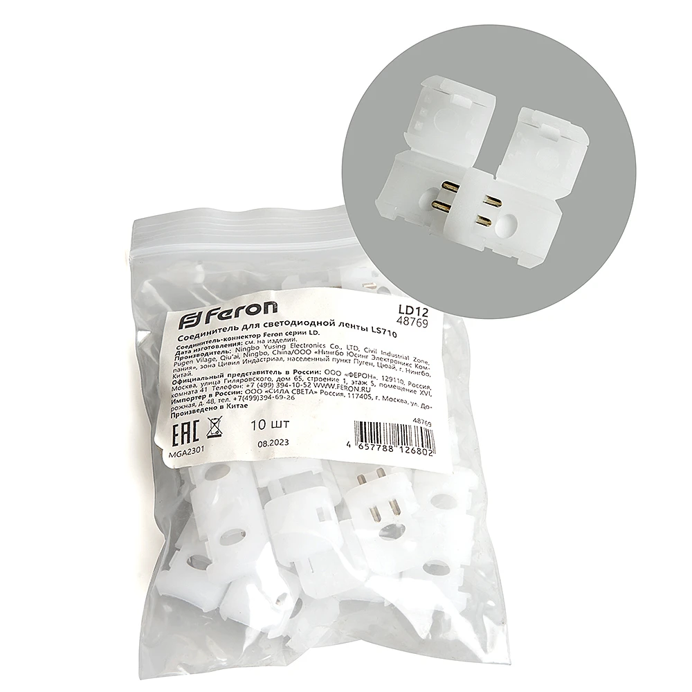 На Соединитель для ленты LS710 Feron LD12 48769 от Feron действует официальная гарантия производителя — от 2 лет и более. По вопросам гарантии в Беларуси обращайтесь по телефону +375 (29) 801 91 06 или на info@marketsveta.by.