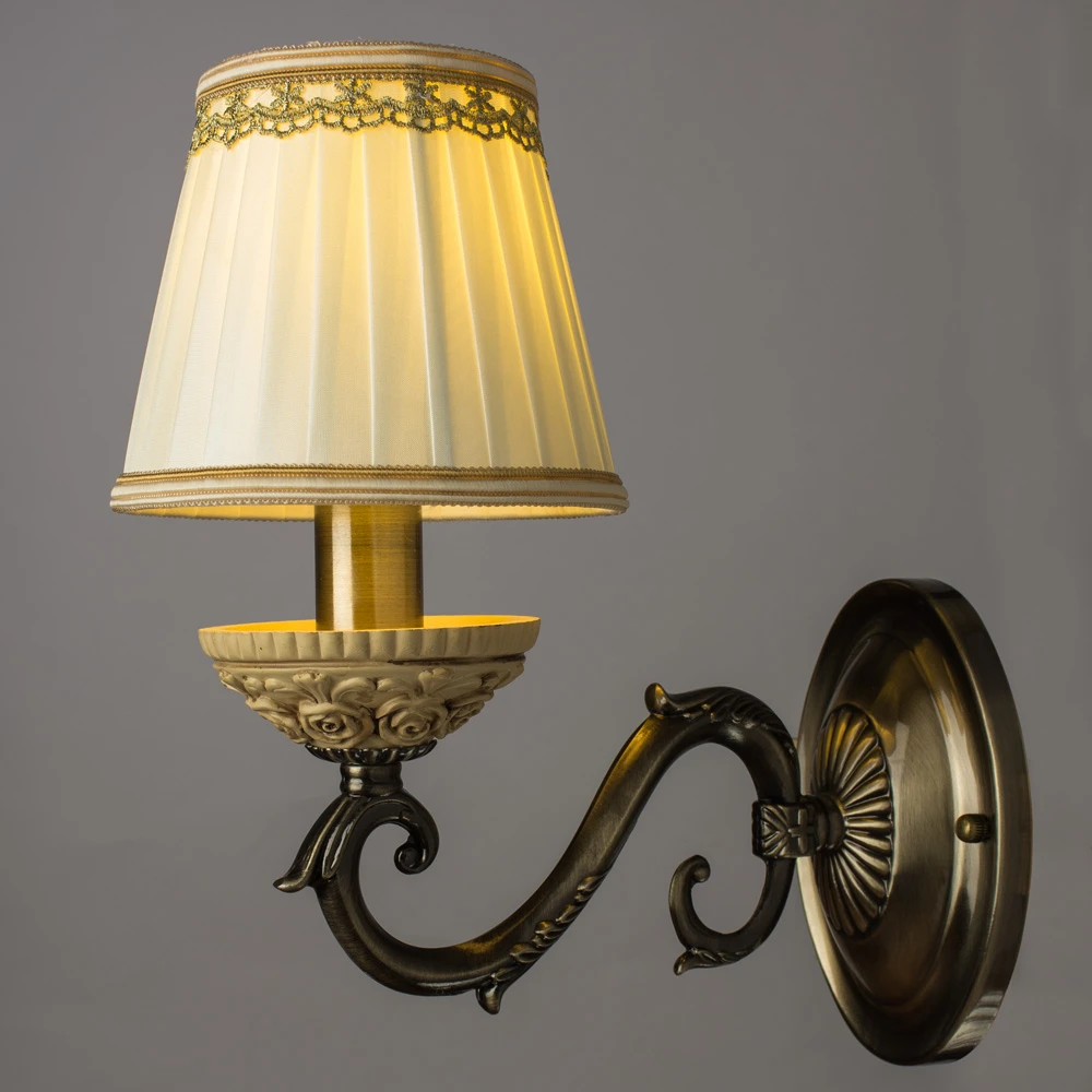 Бра Arte Lamp CHERISH A9575AP-1AB от Arte Lamp, подходит для кухни, для гостиной, для спальни, для кабинета, в стиле классика, флористика, ретро. Материал — металл, цвет бронза, плафон из ткань, цвет плафона белый, форма плафона — круглый абажур. Модель имеет 1 лампу, цоколь E14, мощность 40 Вт. Степень защиты IP20. Габариты: высота 290 мм, ширина 140 мм. Коллекция Cherish, бра — С абажурами.