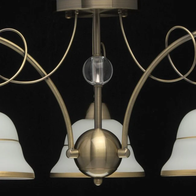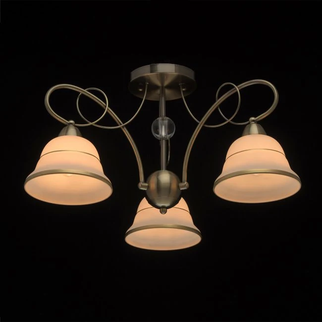 Потолочная люстра De Markt Моника 372013703 от De Markt, подходит для гостиной, для спальни, в стиле классика. Материал — металл, цвет античная бронза, плафон из стекло, цвет плафона белый. Модель имеет 3 лампы, цоколь E14, мощность 60 Вт, площадь освещения до 9 кв. м. Габариты: высота 300 мм, ширина 580 мм, диаметр 580 мм. Коллекция Моника.