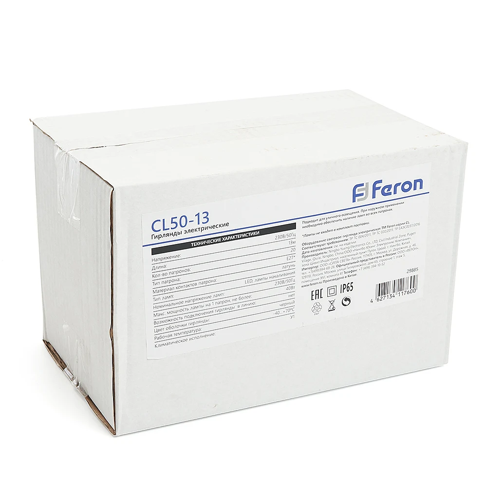 Гирлянда Feron CL50-13 29885 от Feron — новогодние товары. Материал — каучук, цвет черный. Модель — цоколь E27. Степень защиты IP65. Коллекция CL50-13.