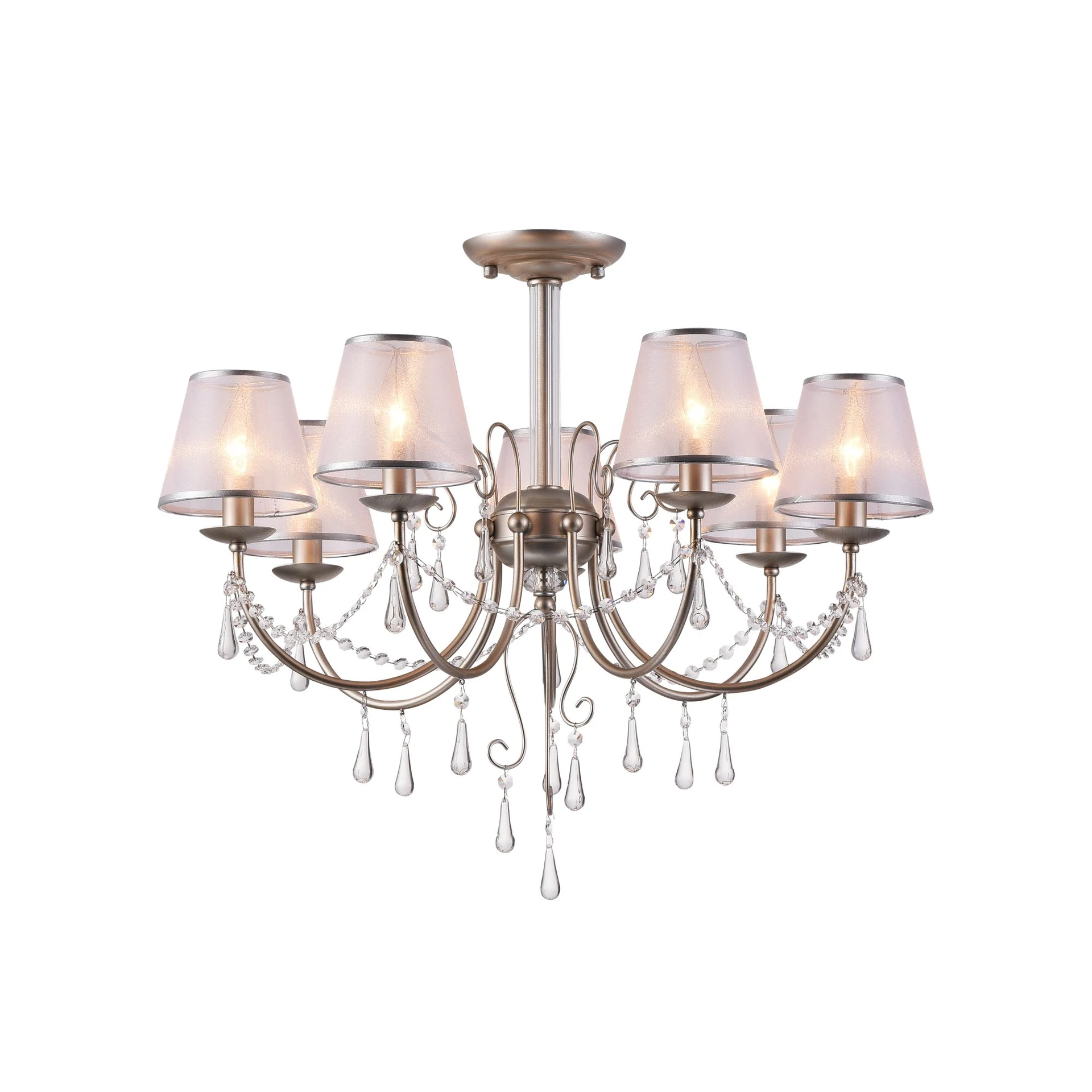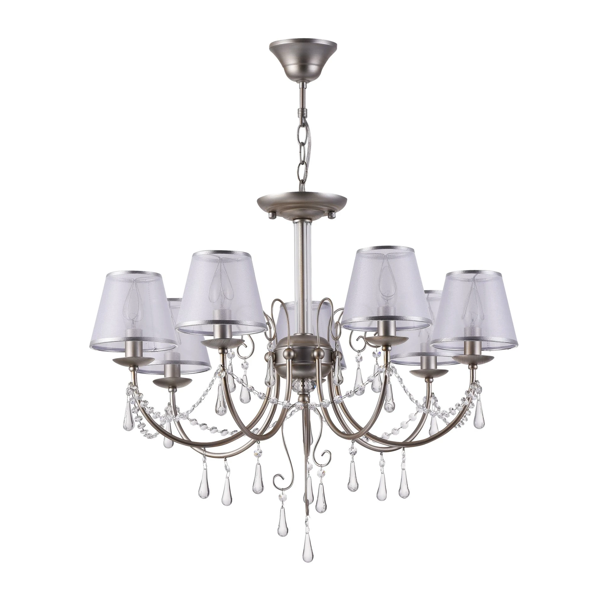 Подвесная люстра Freya Dominic FR2540PL-07BR от Freya, подходит для спальни, в стиле классика. Материал — металл, цвет серебро, форма плафона — круглый абажур. Модель имеет 7 ламп, цоколь E14, мощность 40 Вт. Направление света — вверх. Степень защиты IP20. Габариты: высота 601 мм, ширина 726 мм, диаметр 726 мм. Декор — хрустальные подвески, коллекция Dominic.