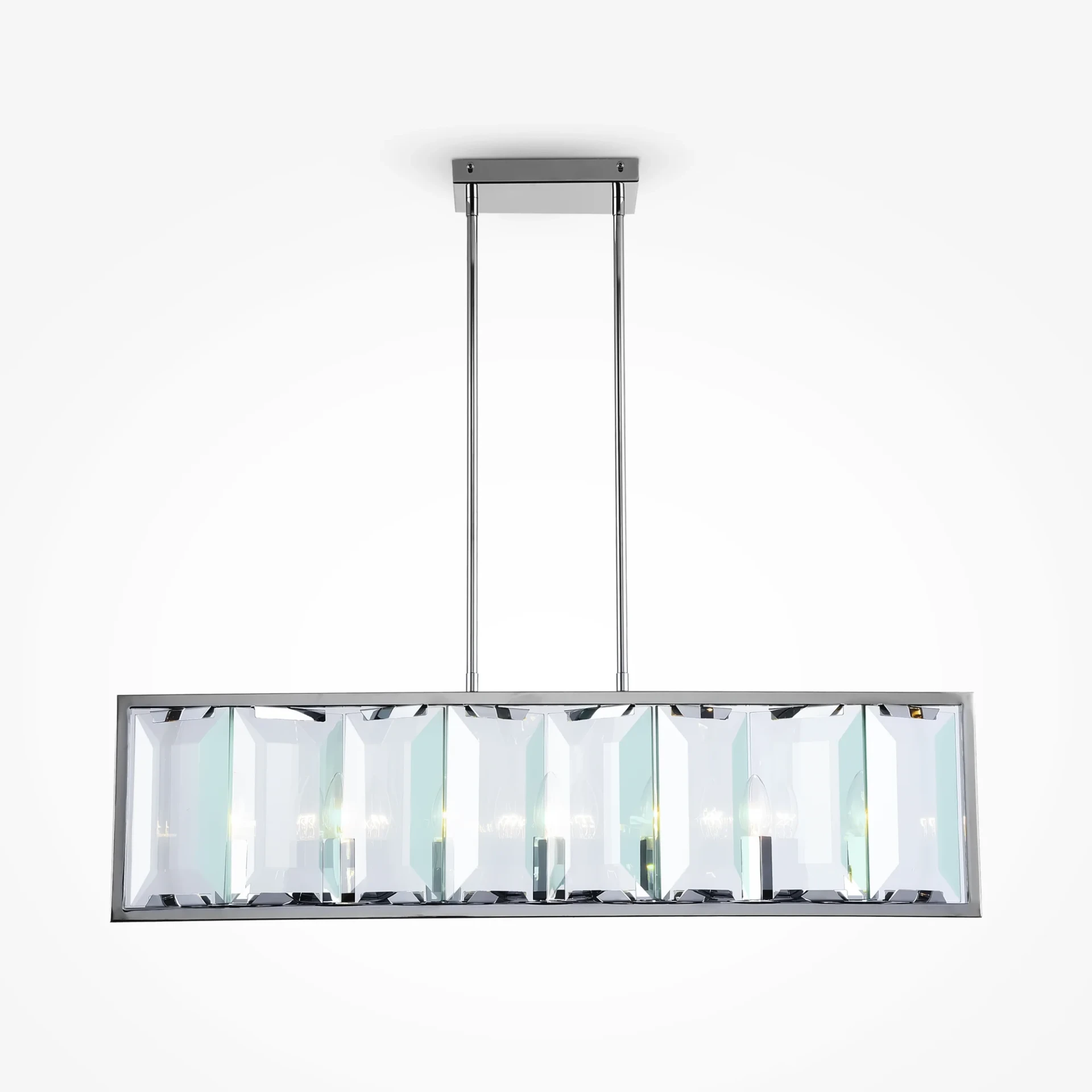 Люстра на штанге Maytoni Cerezo MOD202PL-07N от Maytoni, подходит для кухни, для гостиной, в стиле современный. Материал — металл, цвет никель, плафон из стекла, цвет плафона прозрачный, форма плафона — длинные. Модель имеет 7 ламп, цоколь E14, мощность 40 Вт. Направление света — вверх. Габариты: высота 1035 мм, ширина 905 мм. Коллекция Cerezo.