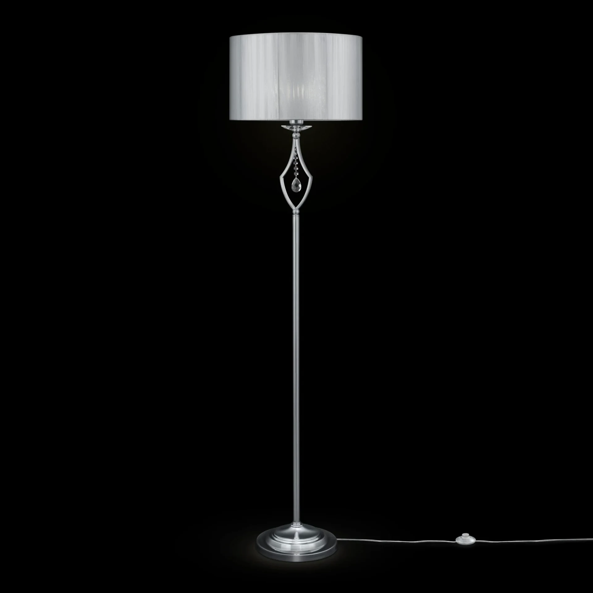 Торшер Maytoni Miraggio MOD602-FL-01-N от Maytoni, подходит для гостиной, для спальни, в стиле современный. Материал — металл, цвет хром, плафон из органза, цвет плафона белый, форма плафона — цилиндр. Модель имеет 1 лампу, цоколь E27, мощность 40 Вт. Ножной выключатель. Степень защиты IP20. Габариты: высота 1660 мм, ширина 420 мм, диаметр 420 мм. Коллекция Miraggio, торшер — Абажуры, торшер — Круглые.