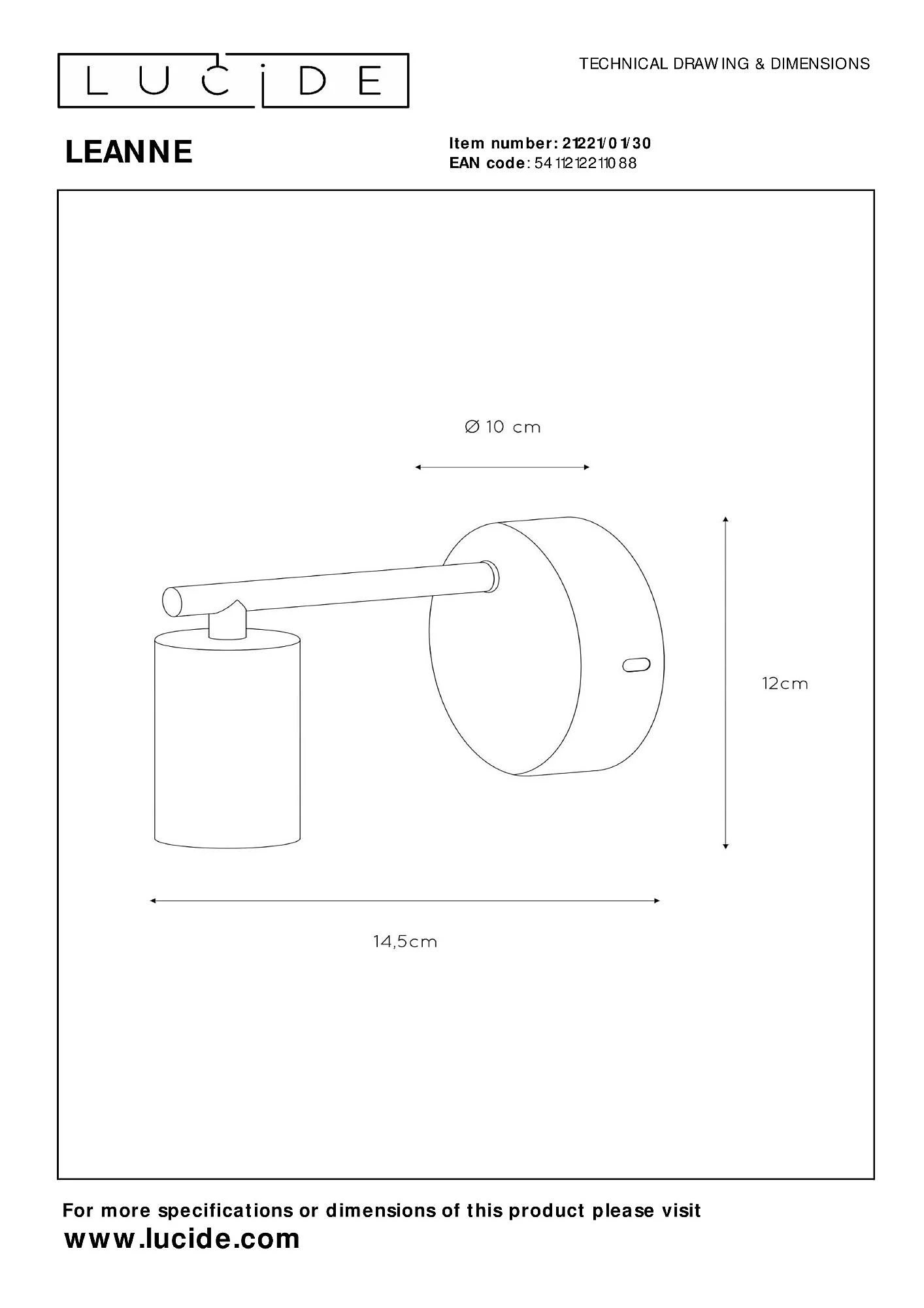 На Настенное бра Lucide Leanne 21221/01/30 от Lucide действует официальная гарантия производителя — от 2 лет и более. По вопросам гарантии в Беларуси обращайтесь по телефону +375 (29) 801 91 06 или на info@marketsveta.by.