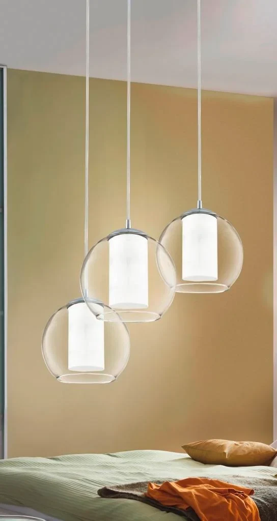 Светильник подвесной Eglo 92762 от Eglo, подходит для прихожей, в стиле современный. Материал — металл, цвет хром, плафон из стекла, цвет плафона прозрачный, форма плафона — шар. Модель имеет 3 лампы, цоколь E27, мощность 180 Вт. Поддержка диммера. Габариты: высота 1100 мм, ширина 505 мм, диаметр 505 мм.