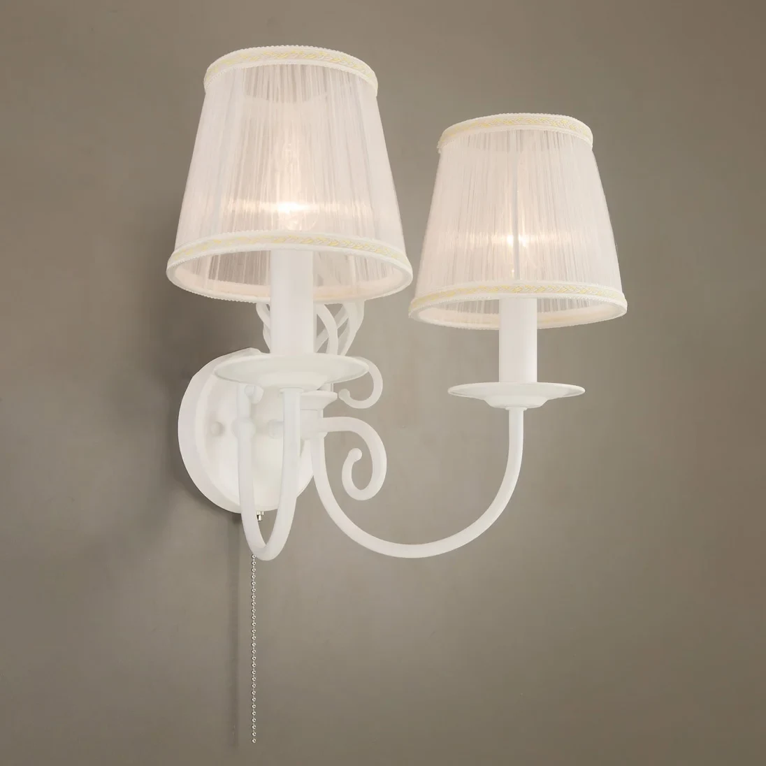 Бра Citilux Ровена Белый CL427320 от Citilux, подходит для гостиной, в стиле классика. Материал — металл, цвет белый, плафон из текстиль, форма плафона — круглый абажур. Модель имеет 2 лампы, цоколь E14, мощность 120 Вт. Сонетка (шнурок), крепление — планка. Степень защиты IP20. Габариты: высота 290 мм, ширина 360 мм. Коллекция Ровена.