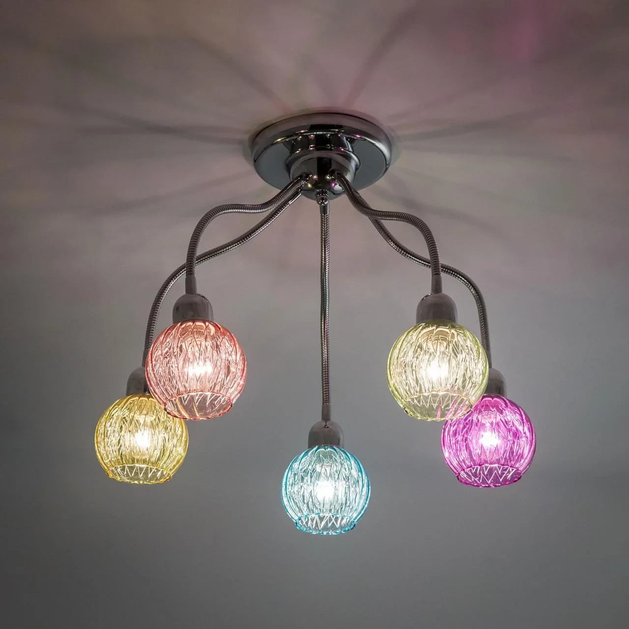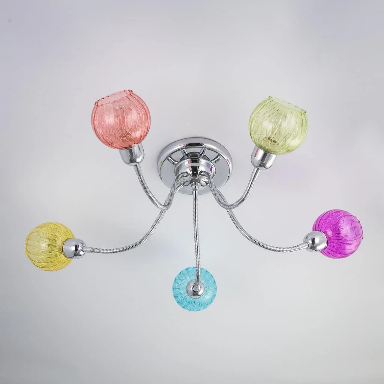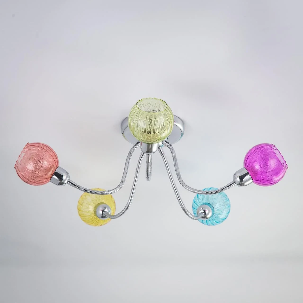 Потолочная люстра Citilux Попурри CL604151 от Citilux, подходит для детской, в стиле современный. Материал — металл, цвет хром, плафон из стекла, цвет плафона цветной, форма плафона — шар. Модель имеет 5 ламп, цоколь E14, мощность 300 Вт. Крепление — планка. Степень защиты IP20. Габариты: высота 320 мм, ширина 500 мм, диаметр 500 мм. Коллекция Попурри.