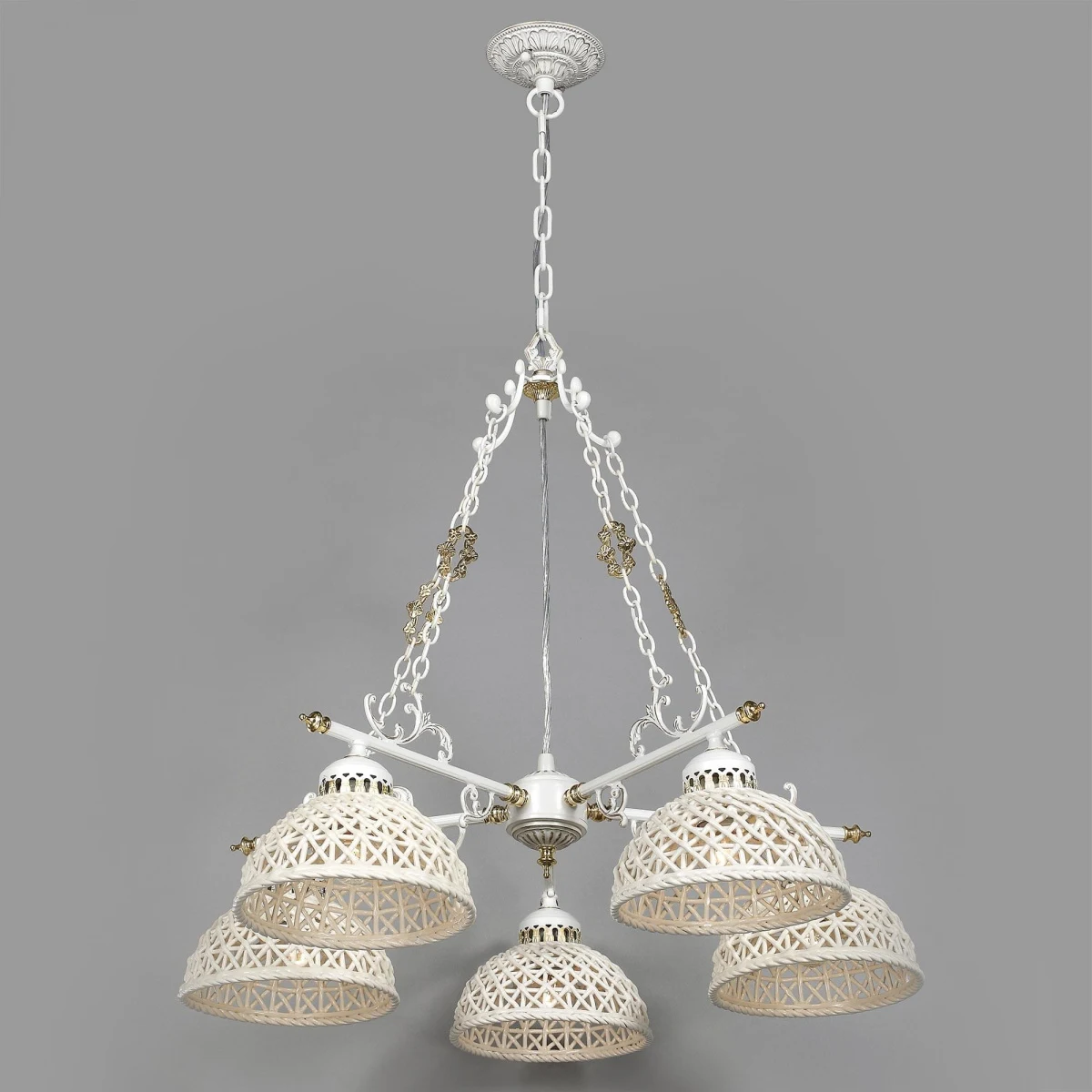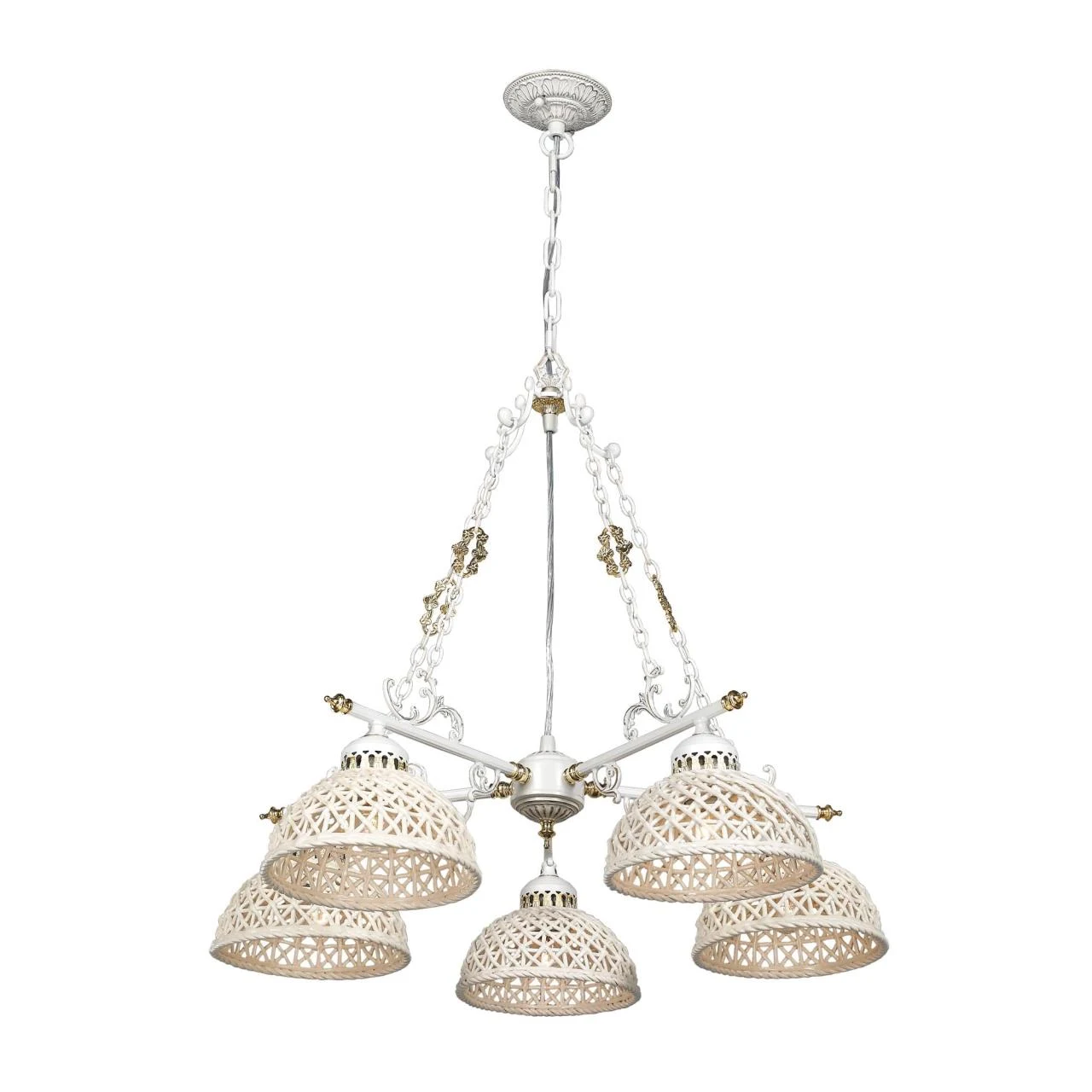 Подвесная люстра Citilux Трензадо CL415151 от Citilux, подходит для кухни, для гостиной, в стиле прованс, кантри, эко. Материал — металл, цвет золото, плафон из керамика, цвет плафона кремовый, форма плафона — полусфера. Модель имеет 5 ламп, цоколь E27, мощность 375 Вт. Поддержка диммера, крепление — планка. Степень защиты IP20. Габариты: высота 1250 мм, ширина 680 мм, диаметр 680 мм. Коллекция Трензадо, возможность регулировки высоты — Есть.