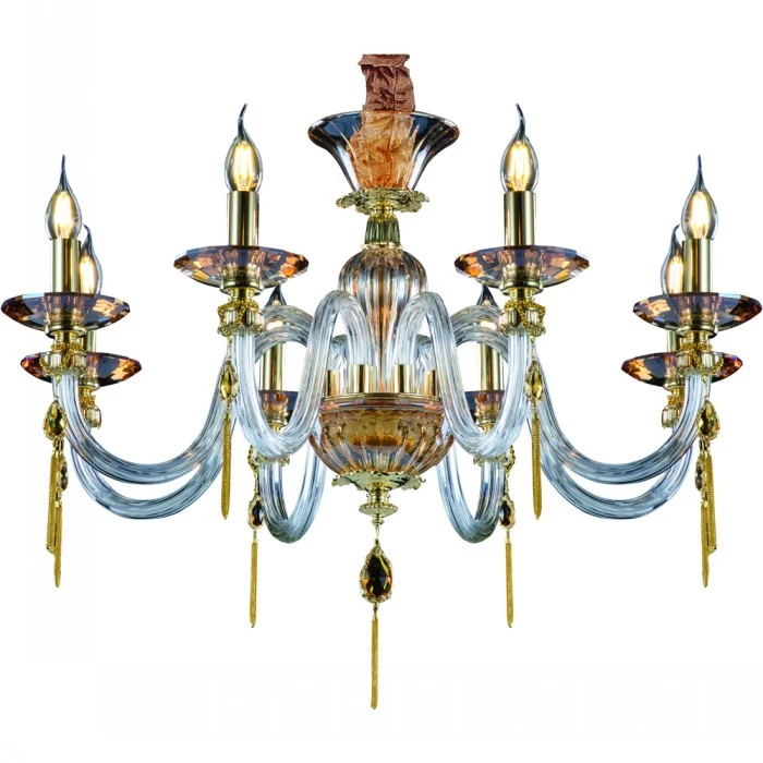 Подвесная люстра Divinare MONA 5126/07 LM-8 от Divinare, подходит для гостиной, в стиле хрусталь. Материал — стекло, цвет золото. Модель имеет 8 ламп, цоколь E14, мощность 40 Вт. Направление света — вверх, крепление — крюк. Степень защиты IP20. Габариты: высота 570 мм, ширина 770 мм. Коллекция Mona.