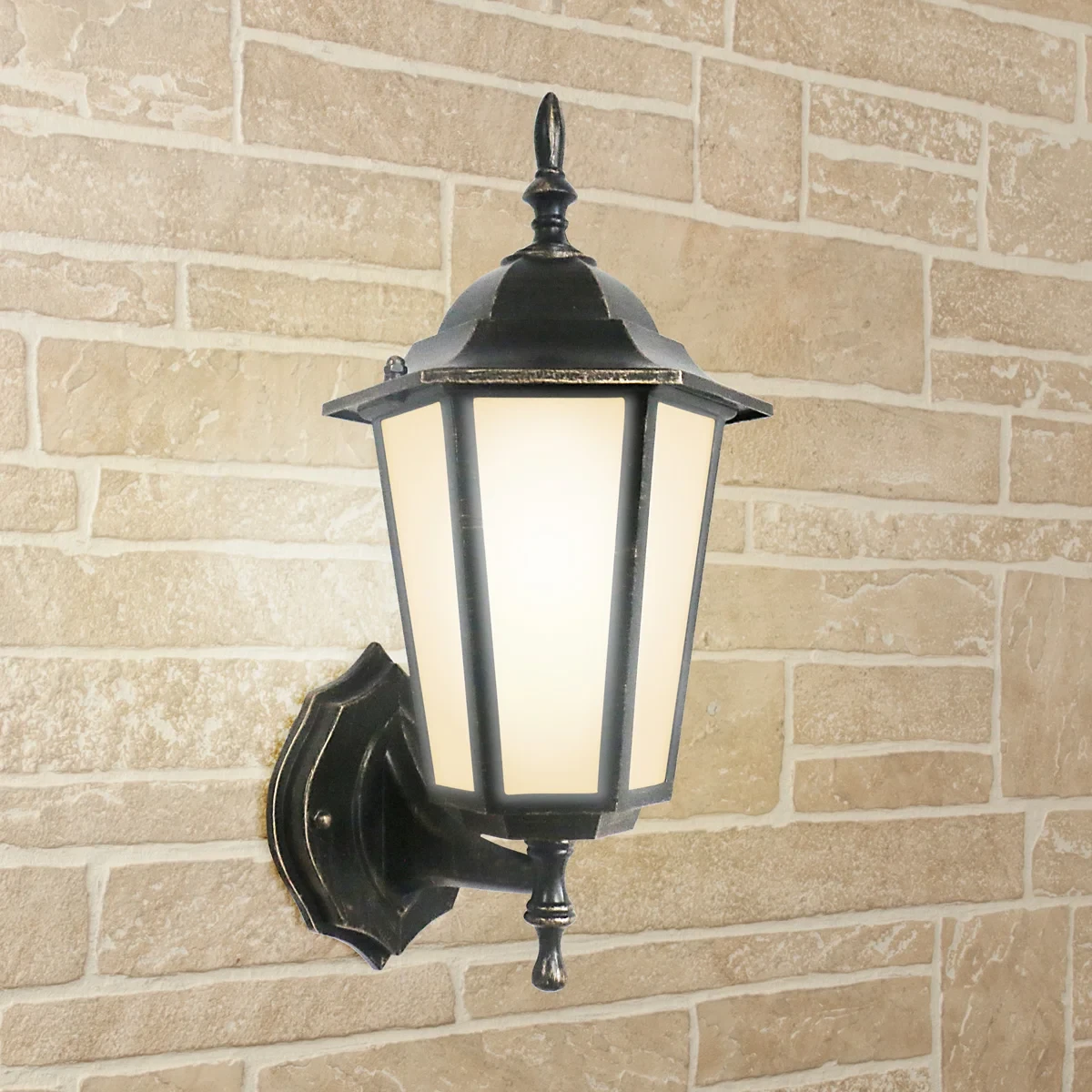 Уличный настенный светильник Elektrostandard 1004 1004U черное золото (GL 1004U) от Elektrostandard, в стиле классика. Материал — алюминий, цвет золото, плафон из стекла, форма плафона — шестигранник. Модель имеет 1 лампу, цоколь E27, мощность 60 Вт. Степень защиты IP44. Габариты: высота 360 мм, ширина 150 мм. Декор — классический, коллекция 1004, настенные уличные — Стеклянные плафоны, настенные уличные — Классический.