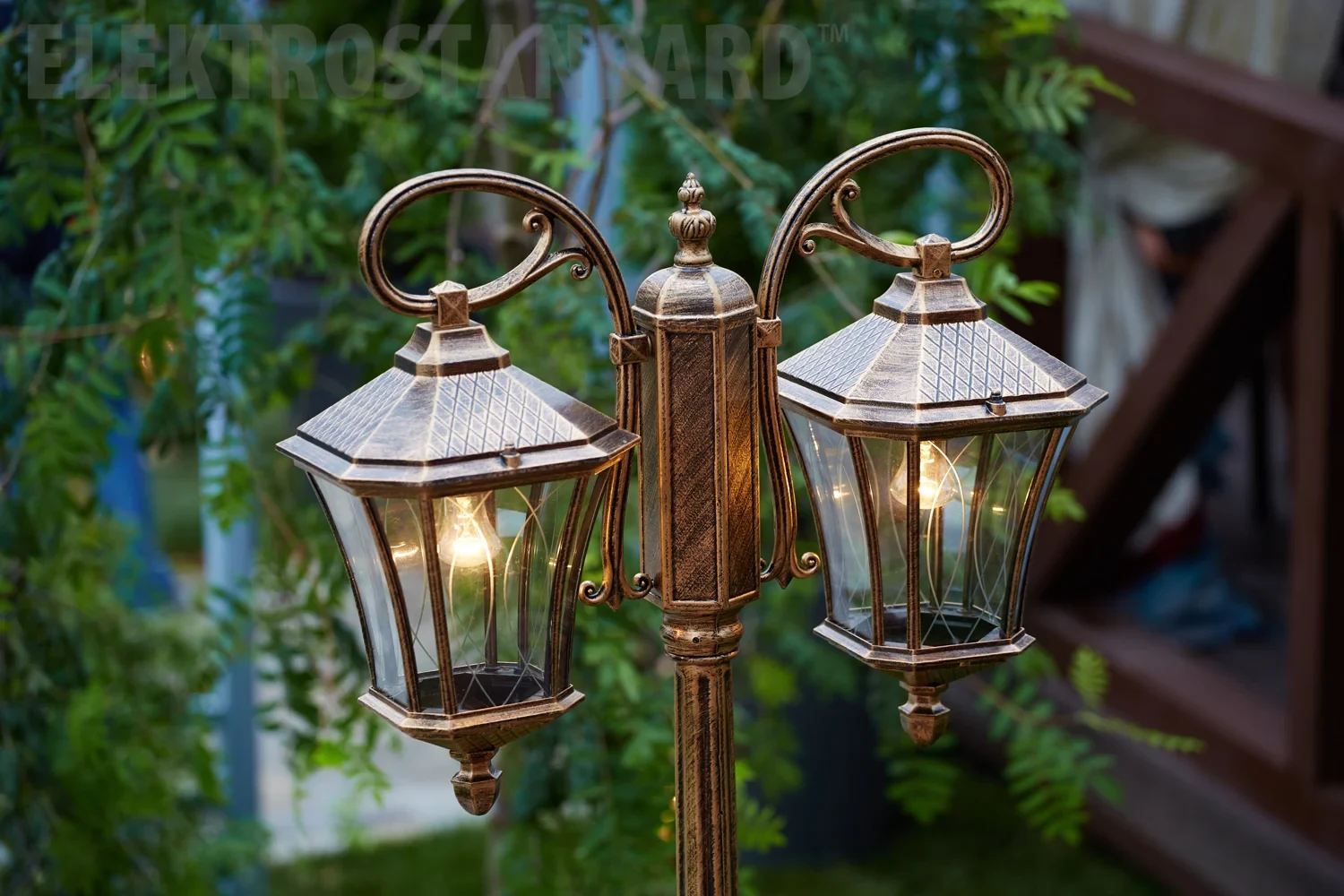 Elektrostandart Virgo Virgo F/2 черное золото (GLXT-1450F/2) от Elektrostandard, в стиле классика. Материал — алюминий, цвет золото, плафон из стекла, форма плафона — прозрачный. Модель имеет 2 лампы, цоколь E27, мощность 60 Вт. Направление света — вниз. Степень защиты IP44. Габариты: высота 2360 мм, ширина 630 мм. Коллекция Virgo, фонарный столб — Направление вниз, фонарный столб — Прозрачный плафон.