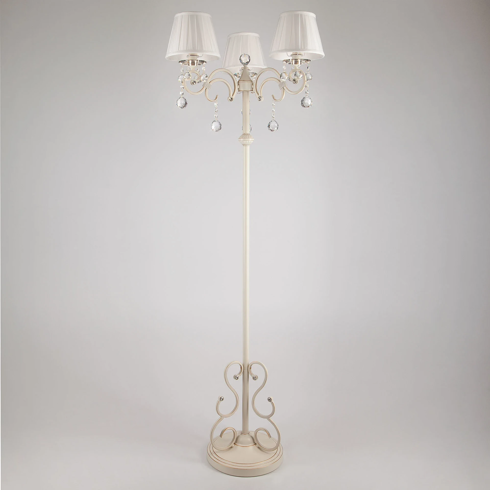 Торшер Eurosvet Ivin 12075/3F белый Strotskis от Eurosvet, подходит для спальни, в стиле прованс. Материал — металл, цвет белый, плафон из ткань, форма плафона — круглый абажур. Модель имеет 3 лампы, цоколь E27, мощность 40 Вт. Ножной выключатель. Габариты: высота 1650 мм, ширина 580 мм. Декор — хрустальные подвески, коллекция Ivin, торшер — Абажуры, торшер — С подвесками.