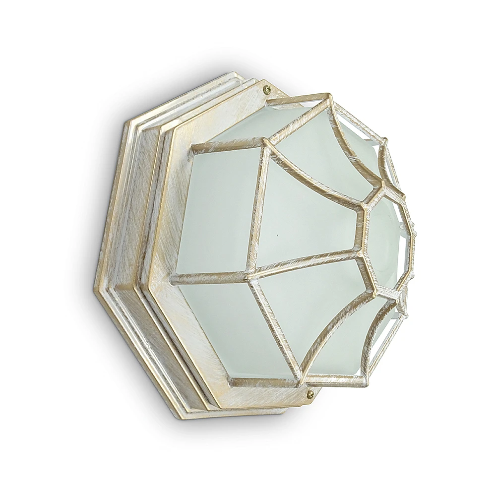 Уличный настенный светильник Feron Аликанте 11652 от Feron, в стиле современный. Материал — металл, цвет золото, форма плафона — составные. Модель имеет 1 лампу, цоколь E27, мощность 60 Вт. Степень защиты IP44. Габариты: высота 120 мм, ширина 270 мм. Декор — классический, коллекция PL661.