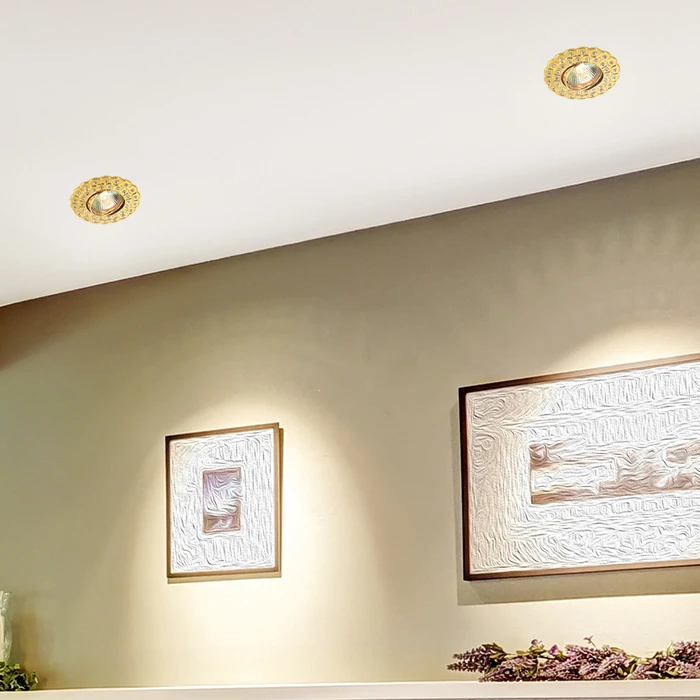 Встраиваемый светильник с узорами Flower 369823 Novotech от Novotech, подходит для спальни, в стиле классика. Материал — алюминий, цвет золото, цвет плафона золото. Модель имеет 1 лампу, цоколь GX5.3, мощность 50 Вт. Поддержка диммера. Габариты: высота 5 мм, ширина 100 мм, диаметр 100 мм. Встраиваемые — Один круг, встраиваемые — Поворотные.