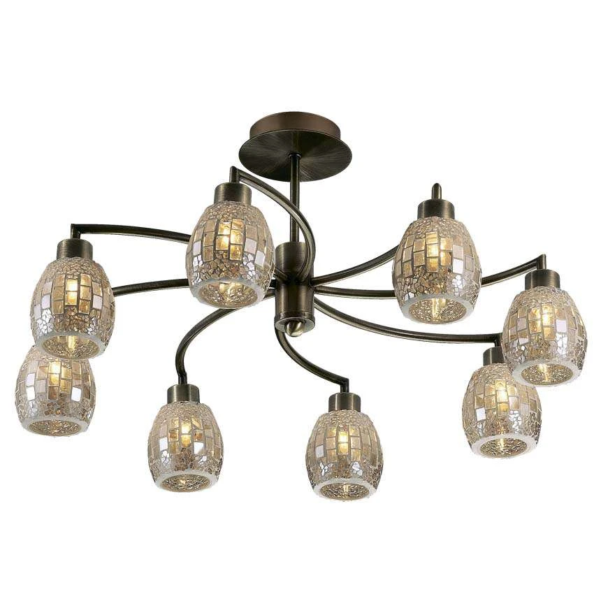 Потолочная люстра Odeon Light Glosse 2166/8C от Odeon Light, в стиле мозаика, тиффани. Материал — металл, цвет бронза, плафон из стекла, форма плафона — шар. Модель имеет 5 ламп, цоколь G9, мощность 40 Вт. Направление света — вниз. Степень защиты IP20. Габариты: высота 300 мм, ширина 580 мм, диаметр 580 мм. Коллекция Glosse.