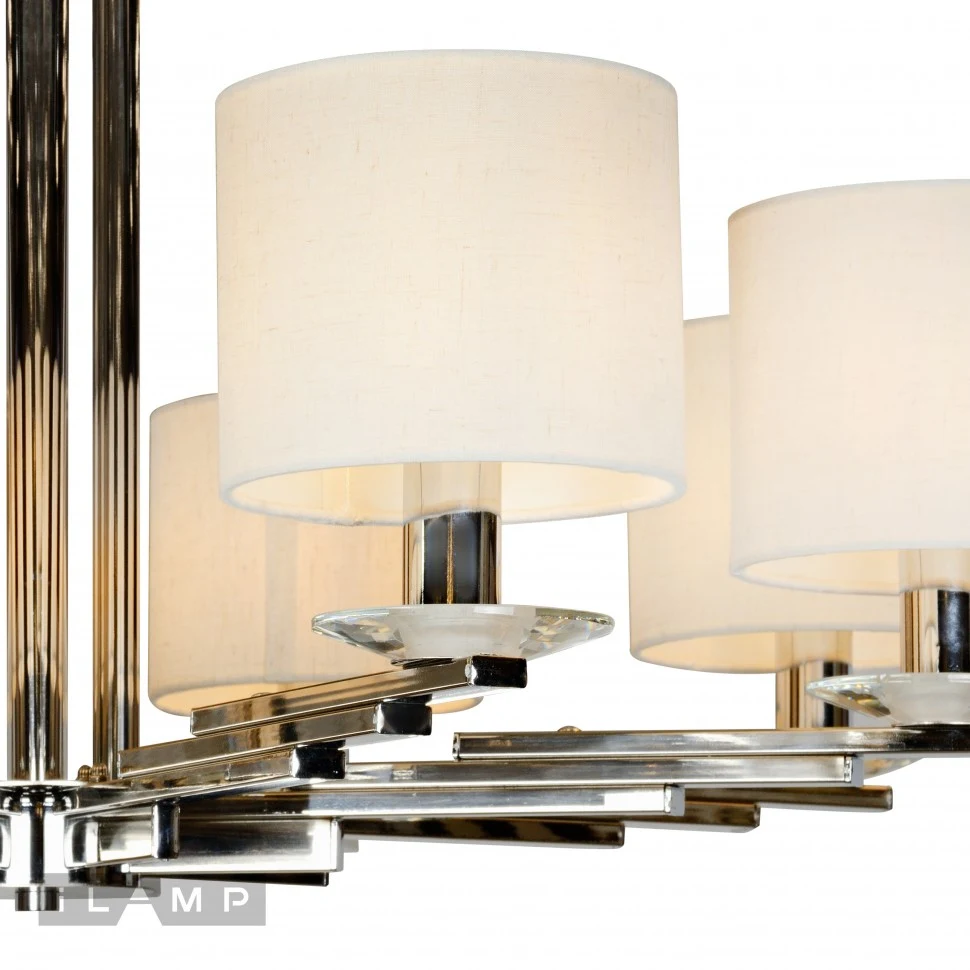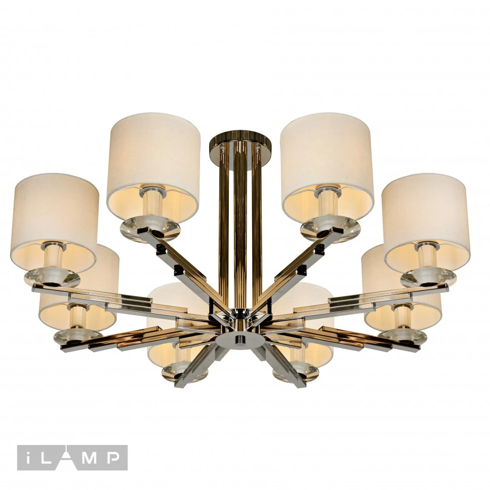 Потолочная люстра iLamp City DJ0608 CR от Ilamp, подходит для гостиной, в стиле классика. Материал — металл, цвет хром, плафон из ткань, цвет плафона белый, форма плафона — цилиндр. Модель имеет 8 ламп, цоколь E14, мощность 40 Вт. Направление света — вверх, крепление — монтажная пластина. Степень защиты IP20. Габариты: высота 430 мм, диаметр 860 мм. Коллекция City.