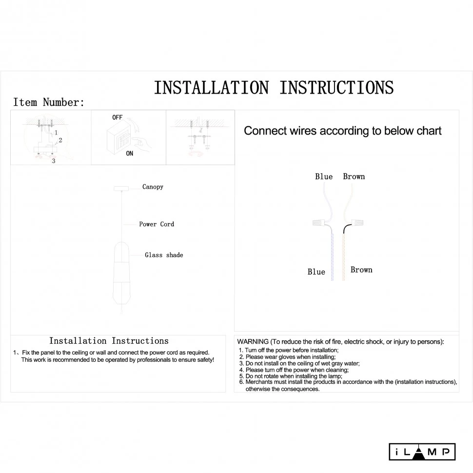 На Светильник подвесной iLamp Drop 8121P SM от Ilamp действует официальная гарантия производителя — от 2 лет и более. По вопросам гарантии в Беларуси обращайтесь по телефону +375 (29) 801 91 06 или на info@marketsveta.by.