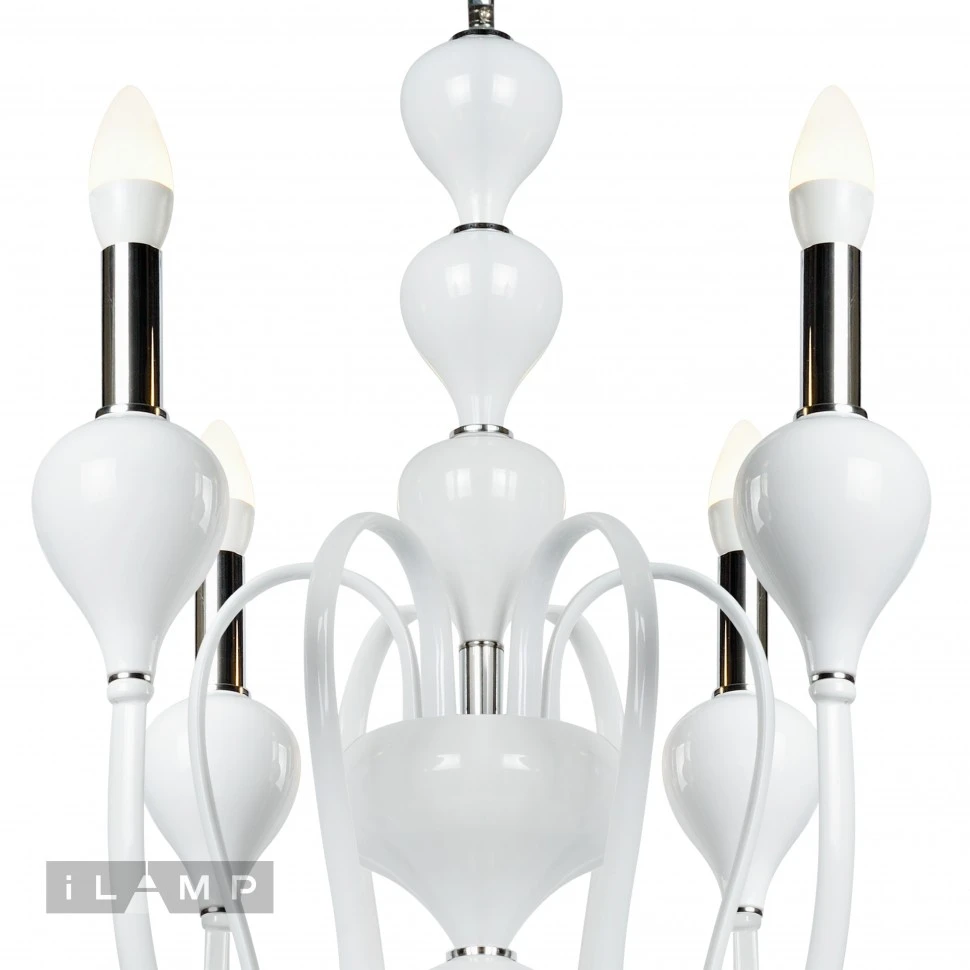 Люстра подвесная Lady iLamp 88003-6 WH от Ilamp, подходит для гостиной, в стиле современный. Материал — металл, цвет белый, плафон из без плафона, форма плафона — свечи. Модель имеет 6 ламп, цоколь E14, мощность 40 Вт. Направление света — вверх, крепление — крюк. Степень защиты IP20. Габариты: высота 1200 мм, диаметр 610 мм. Коллекция Lady.