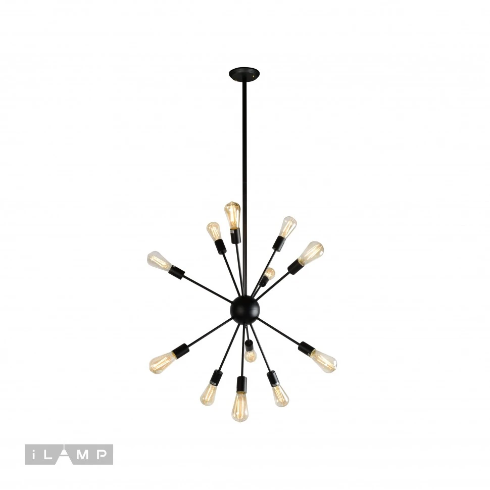 Люстра подвесная Spider iLamp Loft209-12B от Ilamp, подходит для гостиной, в стиле современный, лофт. Материал — металл, цвет черный, плафон из без плафона. Модель имеет 12 ламп, цоколь E27, мощность 40 Вт. Крепление — крюк. Степень защиты IP20. Габариты: высота 1400 мм, диаметр 600 мм. Коллекция Spider.