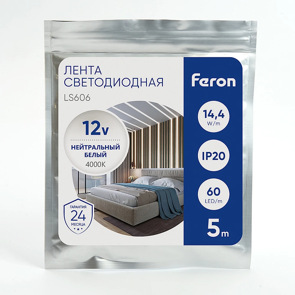 LED лента Feron LS606 41447 от Feron — led ленты. Цвет белый. Модель — цоколь LED, мощность 14,4. Цветовая температура нейтральный (4000k). Степень защиты IP20, напряжение 12 В. Габариты: высота 2.32 мм, ширина 10 мм. Коллекция LS606, плотность светодиодов — 60.
