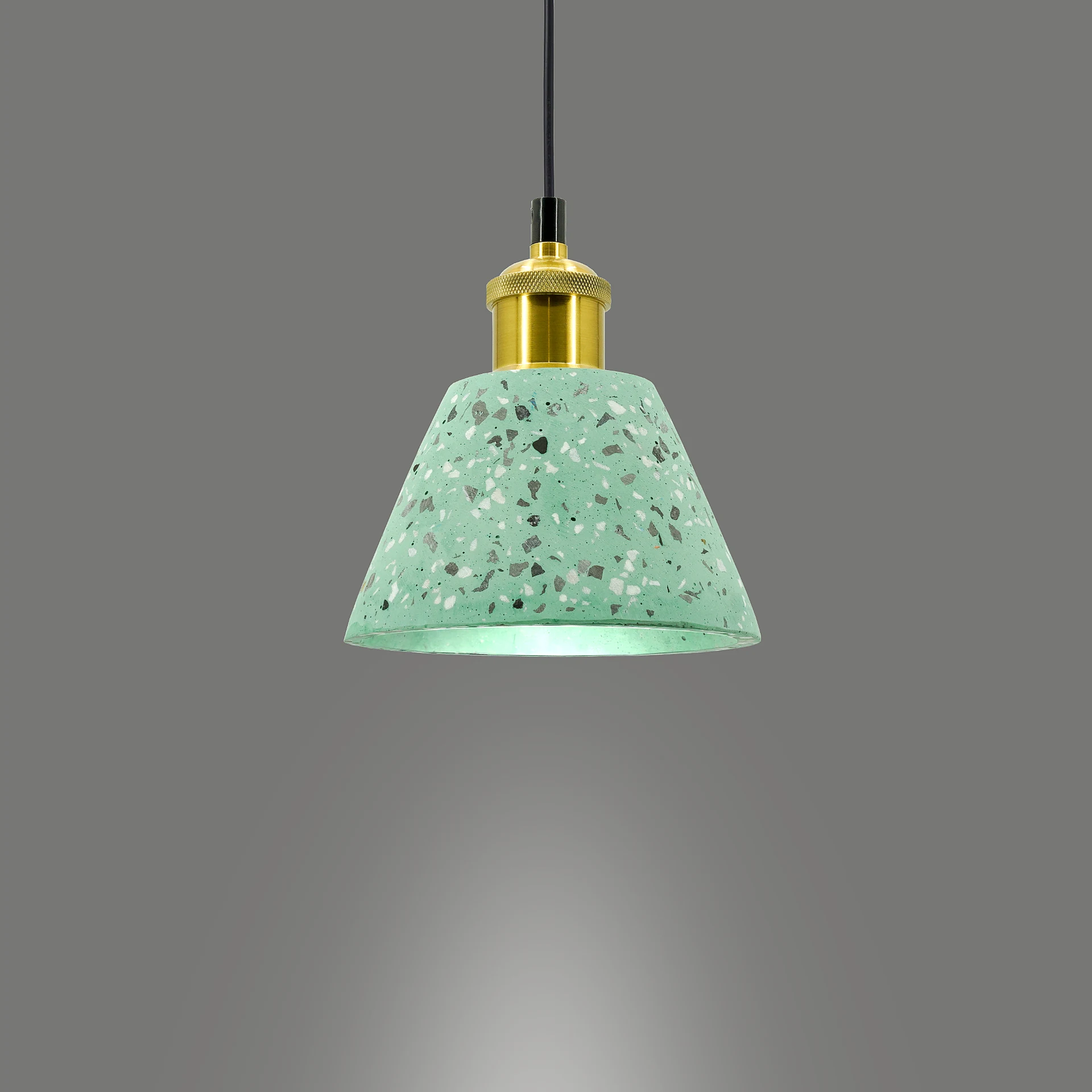 Светильник подвесной LIGHTERA Cairo LE145L-17GR от LIGHTERA, подходит для кухни, для гостиной, для спальни, в стиле современный, арт-деко, дизайнерские. Материал — металл, цвет черный, плафон из бетон, цвет плафона зеленый, форма плафона — конус. Модель имеет 1 лампу, цоколь E27, мощность 40 Вт. Габариты: высота 1800 мм, ширина 150 мм, диаметр 150 мм. Коллекция Cairo.