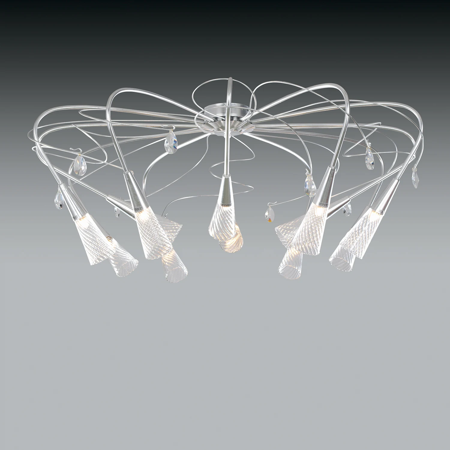 Потолочная люстра Lightstar Aereo 711129 от Lightstar, подходит для гостиной, в стиле современный. Материал — металл, цвет серебро, плафон из стекло, цвет плафона прозрачный, форма плафона — конус. Модель имеет 12 ламп, цоколь G9, мощность 480 Вт. Поддержка диммера, направление света — вниз. Степень защиты IP20. Габариты: высота 450 мм, ширина 1050 мм, диаметр 1050 мм. Декор — хрустальные подвески, коллекция Aereo.