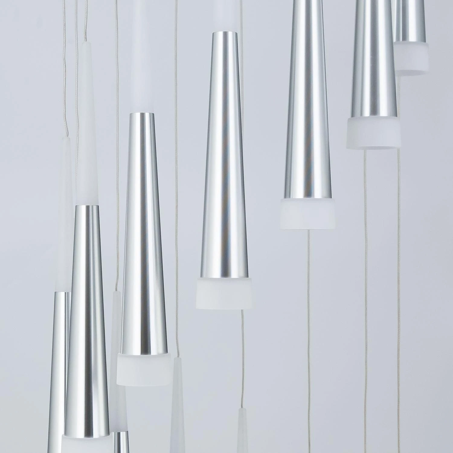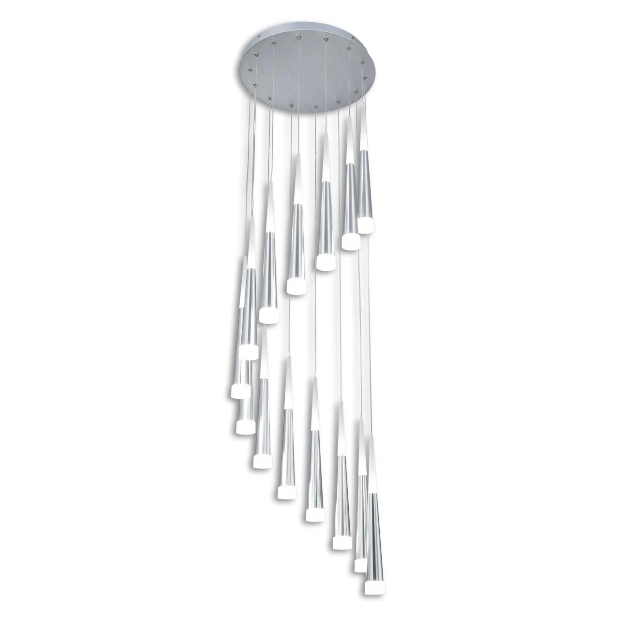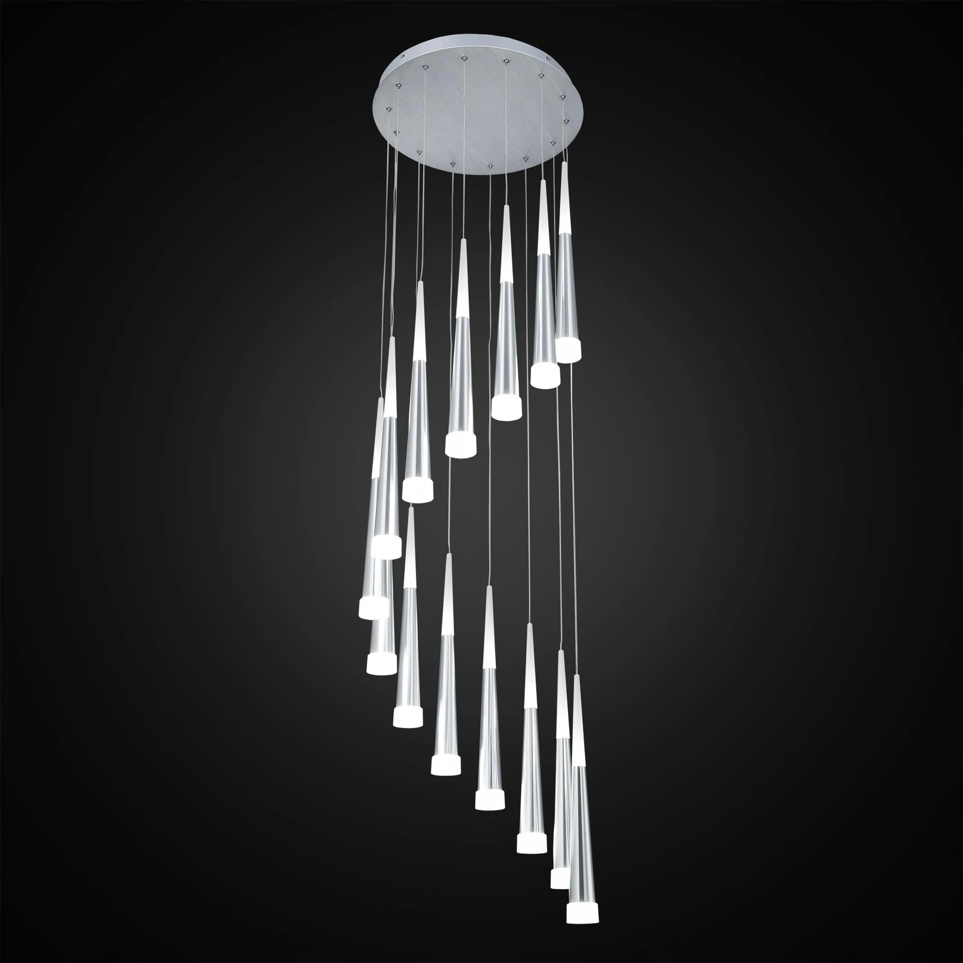 Люстра каскадная Citilux Вегас CL227140 от Citilux, подходит для гостиной, в стиле современный. Материал — металл, цвет алюминий, плафон из оптический полимер, форма плафона — конус. Модель имеет 14 ламп, цоколь LED, мощность 98 Вт. Цветовая температура теплый (3000k), крепление — планка. Степень защиты IP20. Габариты: высота 3000 мм, ширина 450 мм, диаметр 450 мм. Коллекция Вегас, световой поток — 6370.
