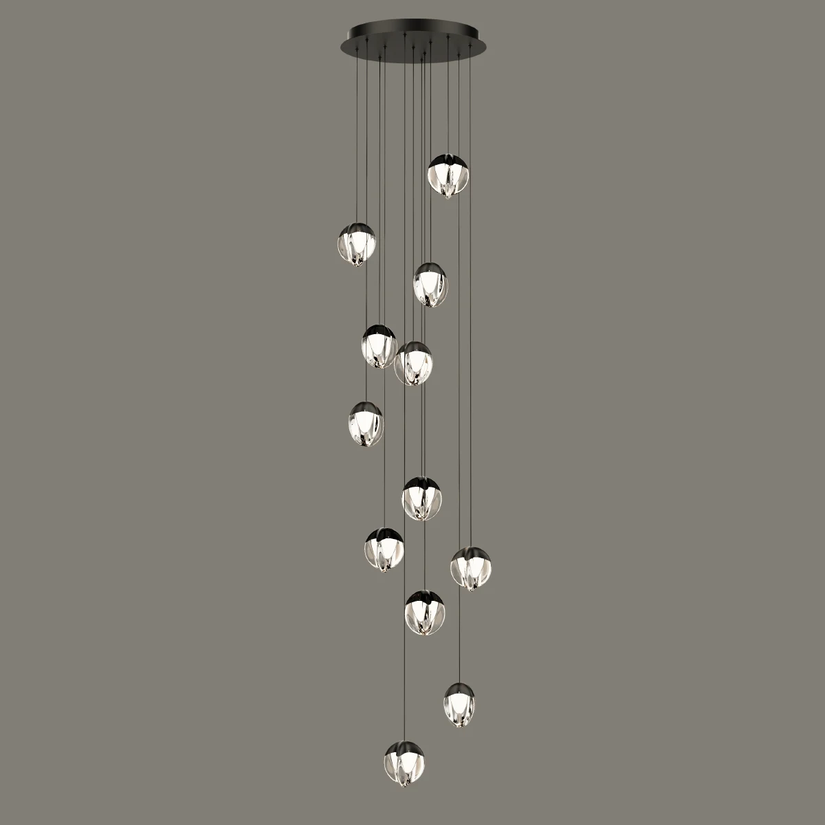 Люстра каскадная Delight Collection MD24001033 MD24001033-12A black/clear от Delight Collection — люстры. Материал — металл, цвет черный, плафон из стекла, цвет плафона прозрачный, форма плафона — шар. Модель имеет 12 ламп, цоколь LED, мощность 5 Вт. Направление света — вниз. Габариты: высота 2000 мм, ширина 500 мм, диаметр 500 мм. Коллекция MD24001033.