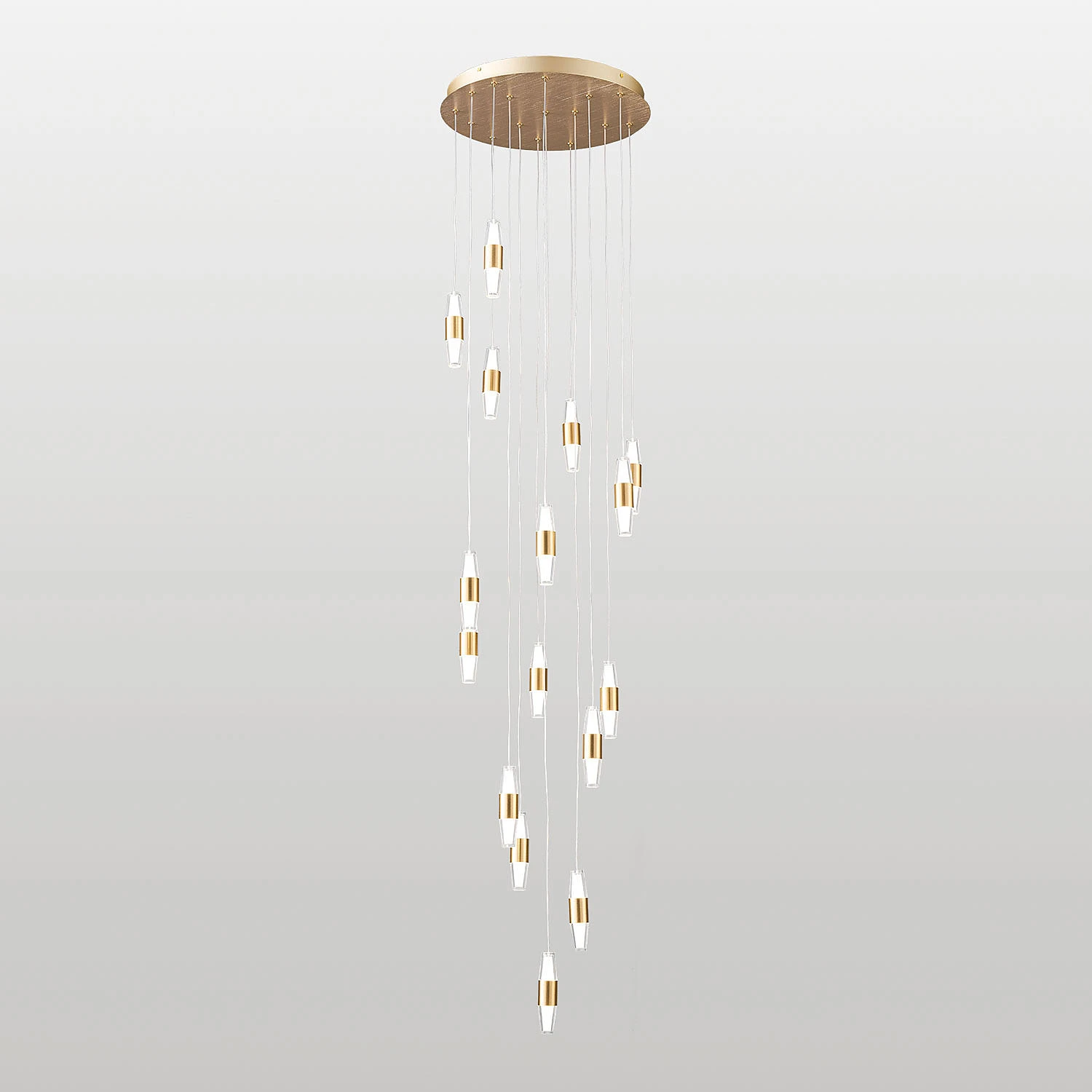 Люстра каскадная Lussole Hopkins LSP-7404 от Lussole — люстры. Материал — металл, цвет золото, плафон из акрил, цвет плафона бесцветный. Модель имеет 32 ламп, цоколь LED, мощность 64 Вт. Направление света — равномерное, цветовая температура нейтральный (4000k). Степень защиты IP20. Габариты: высота 2000 мм, ширина 410 мм. Коллекция Hopkins, световой поток — 5700.