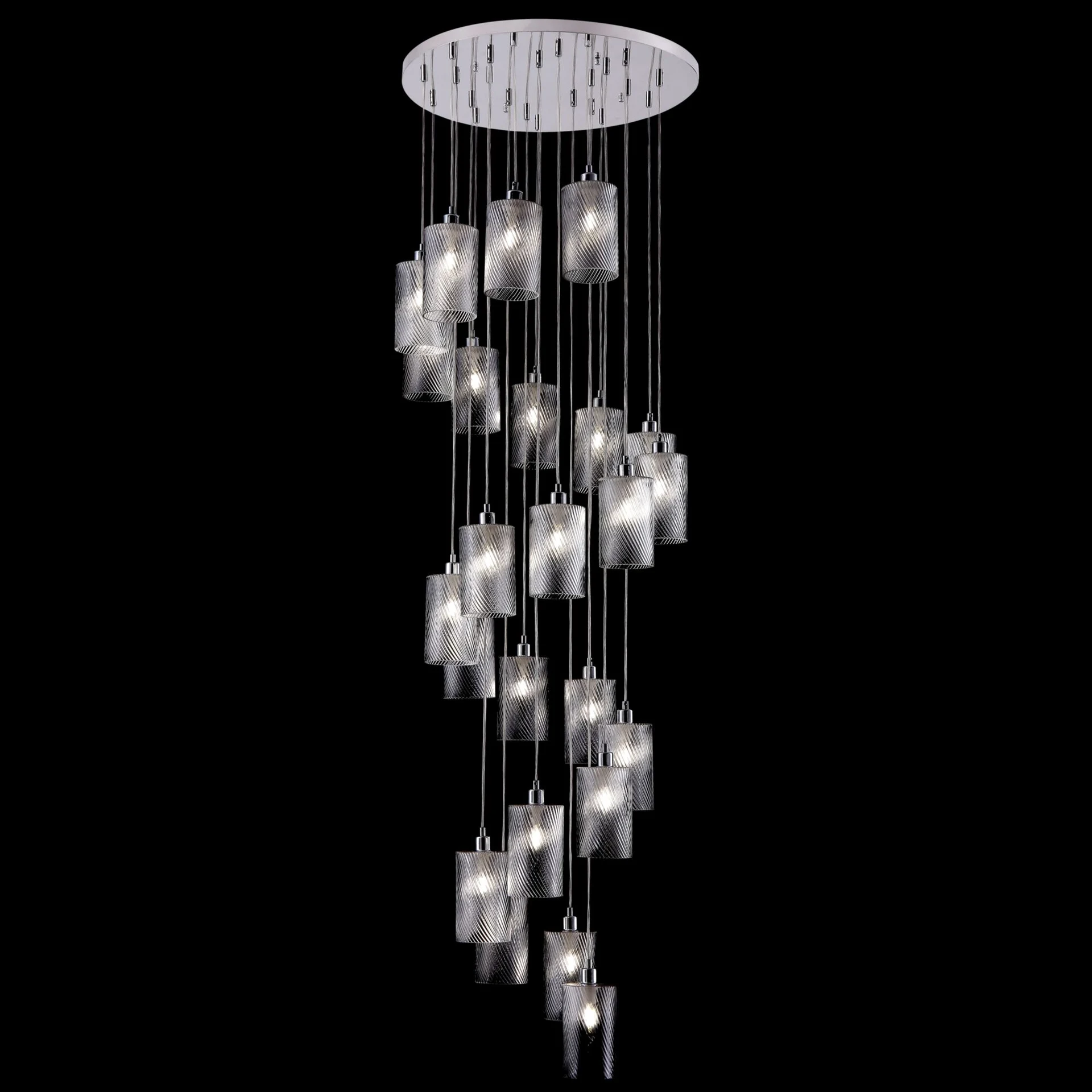 Люстра каскадная Maytoni Lamia MOD049PL-24CH от Maytoni, подходит для гостиной, в стиле современный, арт-деко. Материал — металл, цвет хром, плафон из стекла, цвет плафона прозрачный, форма плафона — цилиндр. Модель имеет 24 ламп, цоколь E14, мощность 40 Вт. Направление света — вниз. Степень защиты IP20. Габариты: высота 2550 мм, ширина 660 мм, диаметр 660 мм. Коллекция Lamia.