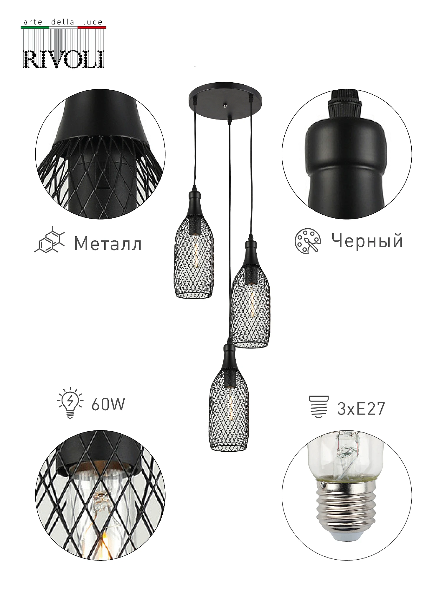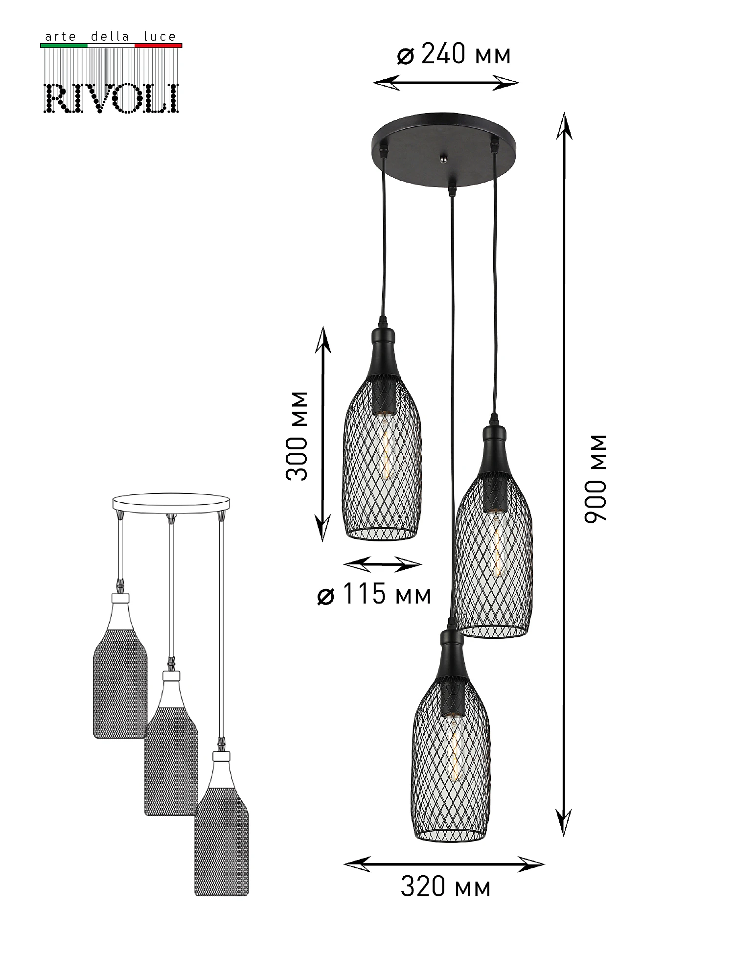 Люстра каскадная Rivoli Martina 5074-203 от Rivoli, подходит для гостиной, в стиле современный. Материал — металл, цвет черный, форма плафона — решетки. Модель имеет 3 лампы, цоколь E27, мощность 60 Вт, площадь освещения до 10 кв. м. Крепление — планка. Степень защиты IP20. Габариты: высота 900 мм, ширина 320 мм. Коллекция Martina.