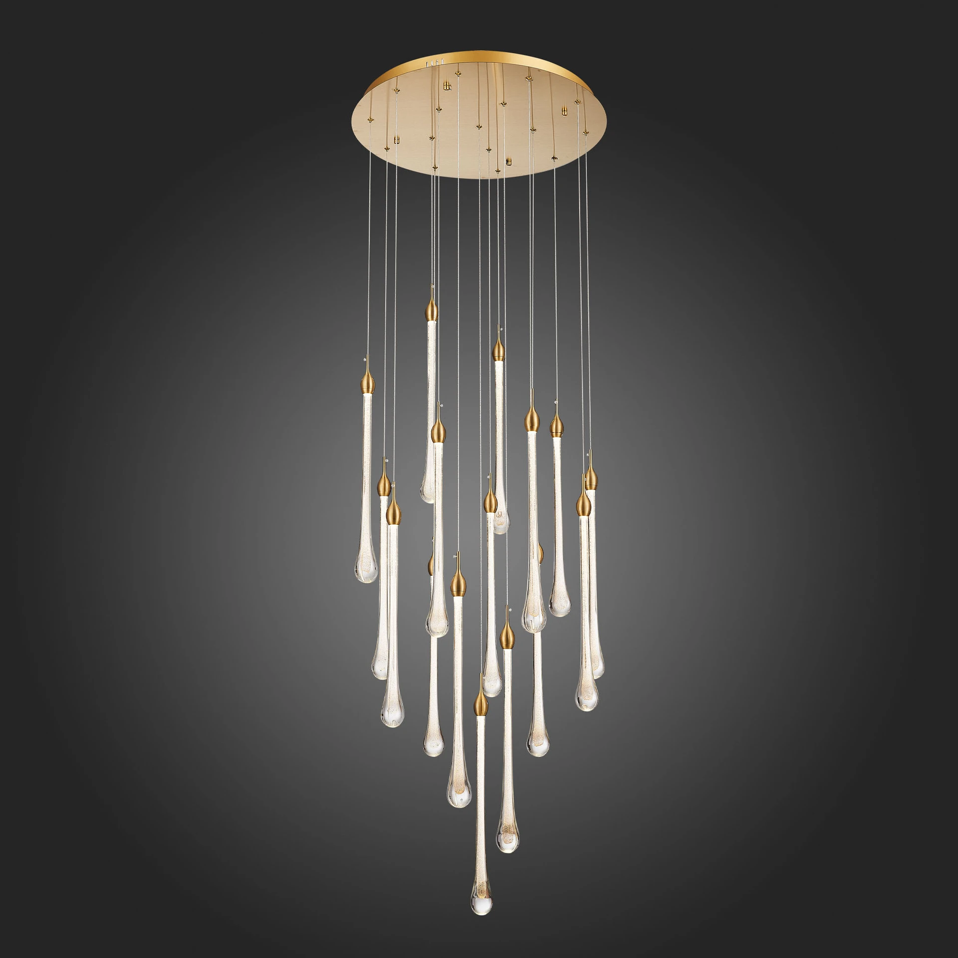 Люстра каскадная ST Luce Faenza SL6103.203.16 от ST Luce, подходит для гостиной, в стиле современный. Материал — металл, цвет золотистый, плафон из хрусталь, цвет плафона прозрачный, форма плафона — капли. Модель имеет 16 ламп, цоколь LED, мощность 48 Вт, площадь освещения до 17 кв. м. Цветовая температура нейтральный (4000k), крепление — планка. Габариты: высота 1800 мм, ширина 600 мм, диаметр 600 мм. Коллекция Faenza, световой поток — 3600.