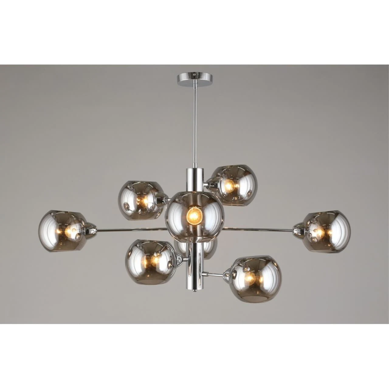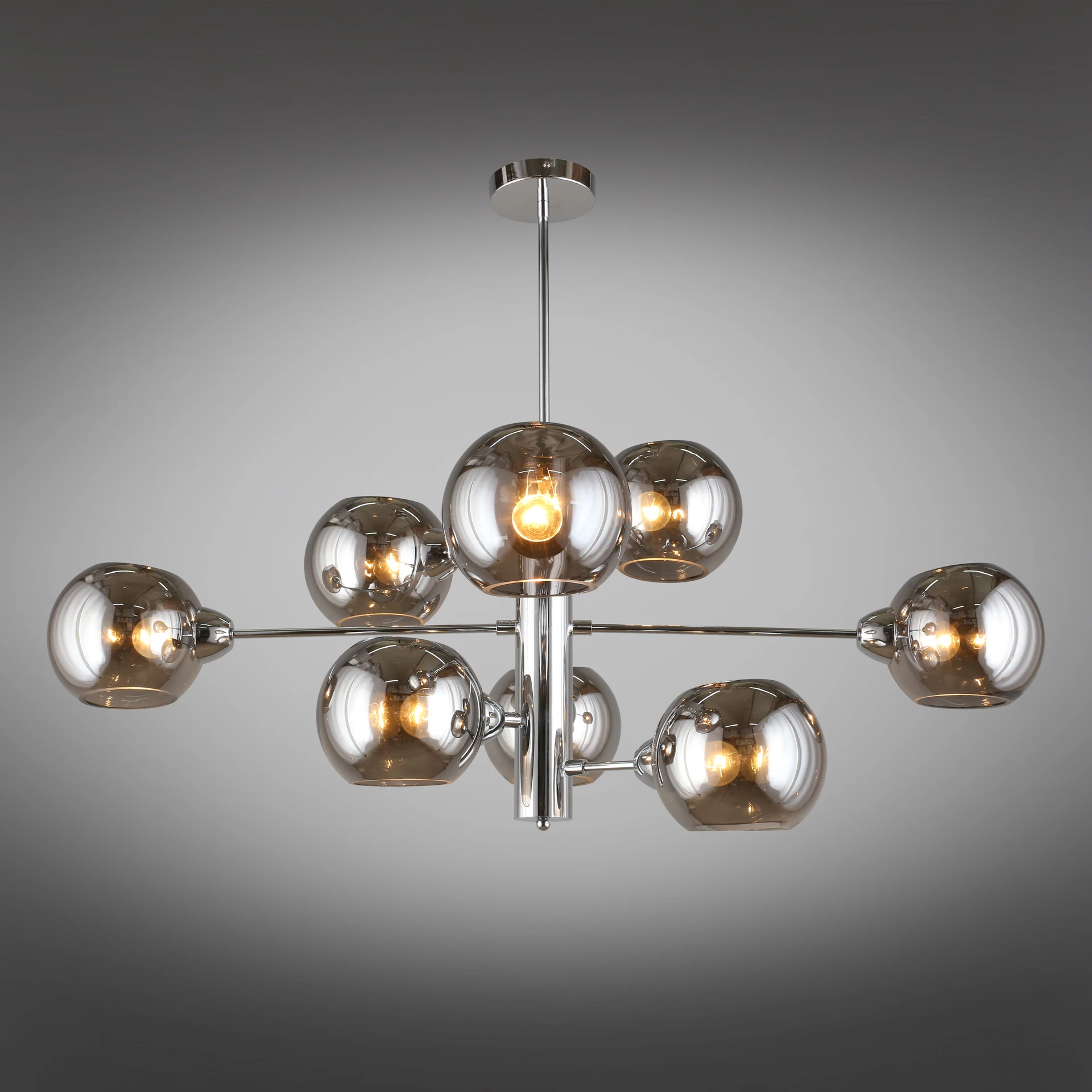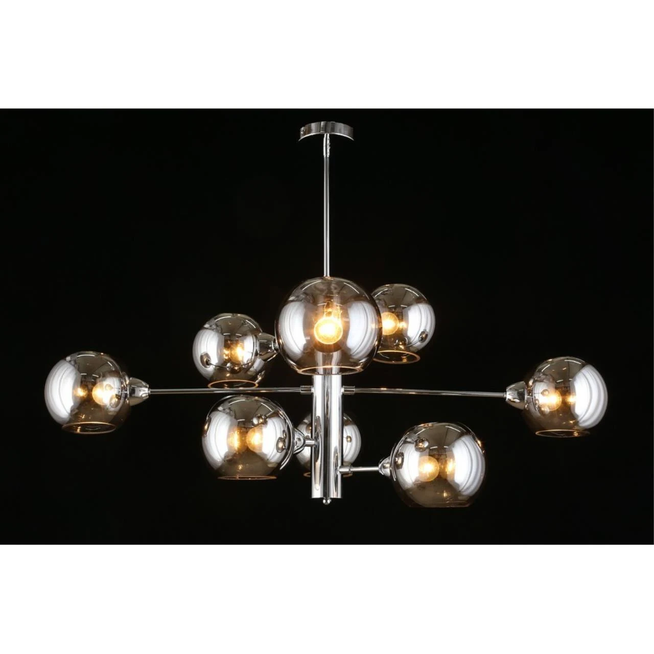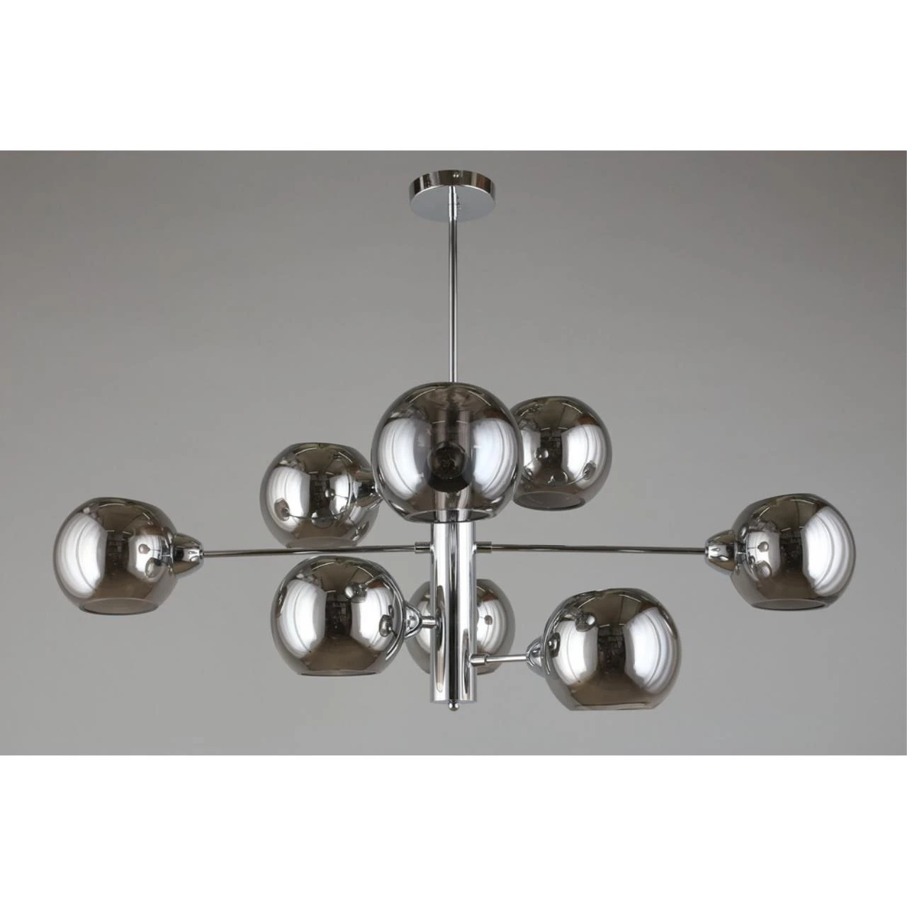 Люстра на штанге Aployt Ameli APL.904.07.08 от Aployt, подходит для гостиной, в стиле современный. Материал — металл, цвет хром, плафон из стекла, цвет плафона дымчатый, форма плафона — шар. Модель имеет 8 ламп, цоколь E14, мощность 320 Вт. Крепление — планка. Габариты: высота 980 мм, ширина 1000 мм. Коллекция Ameli, световой поток — 3360.