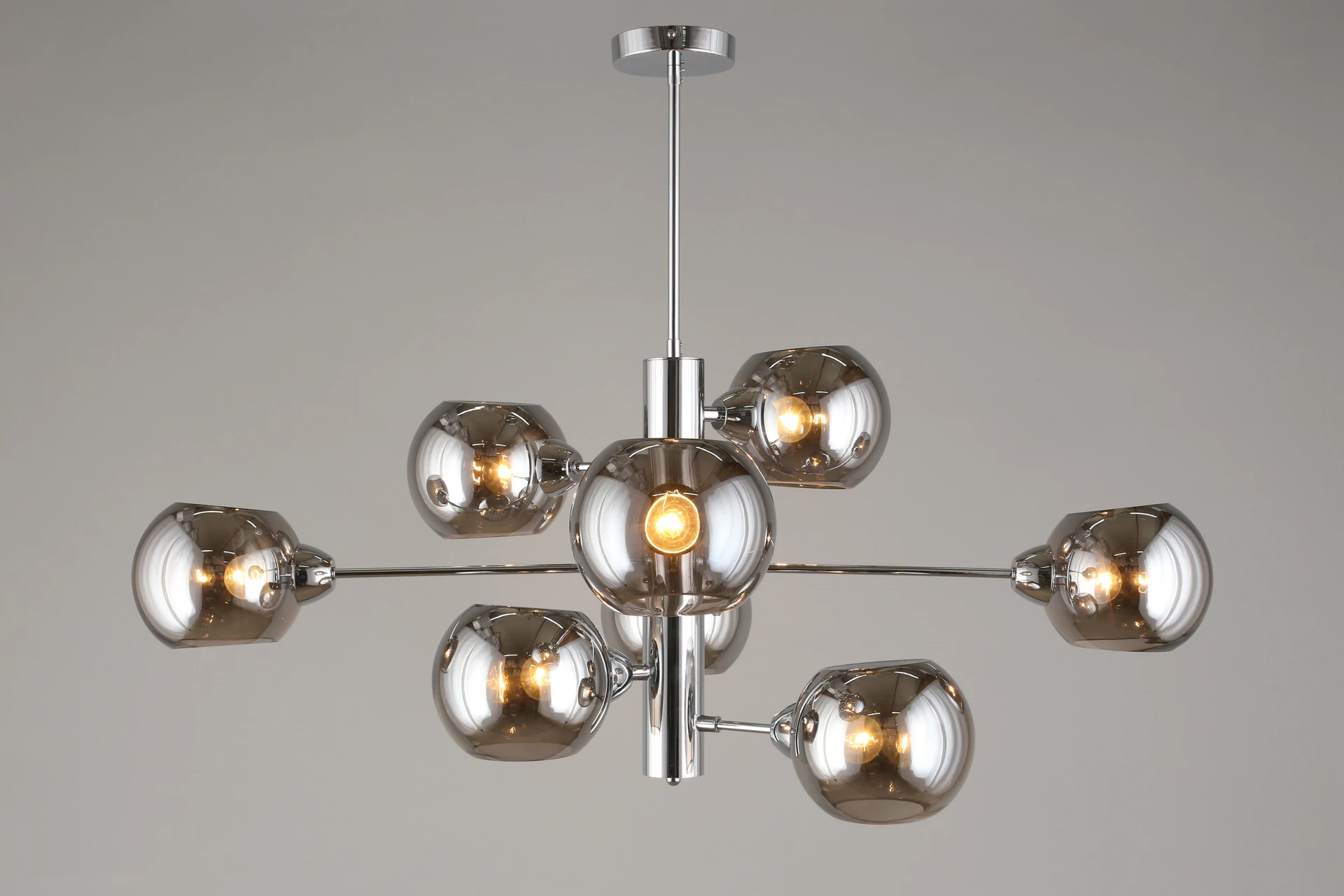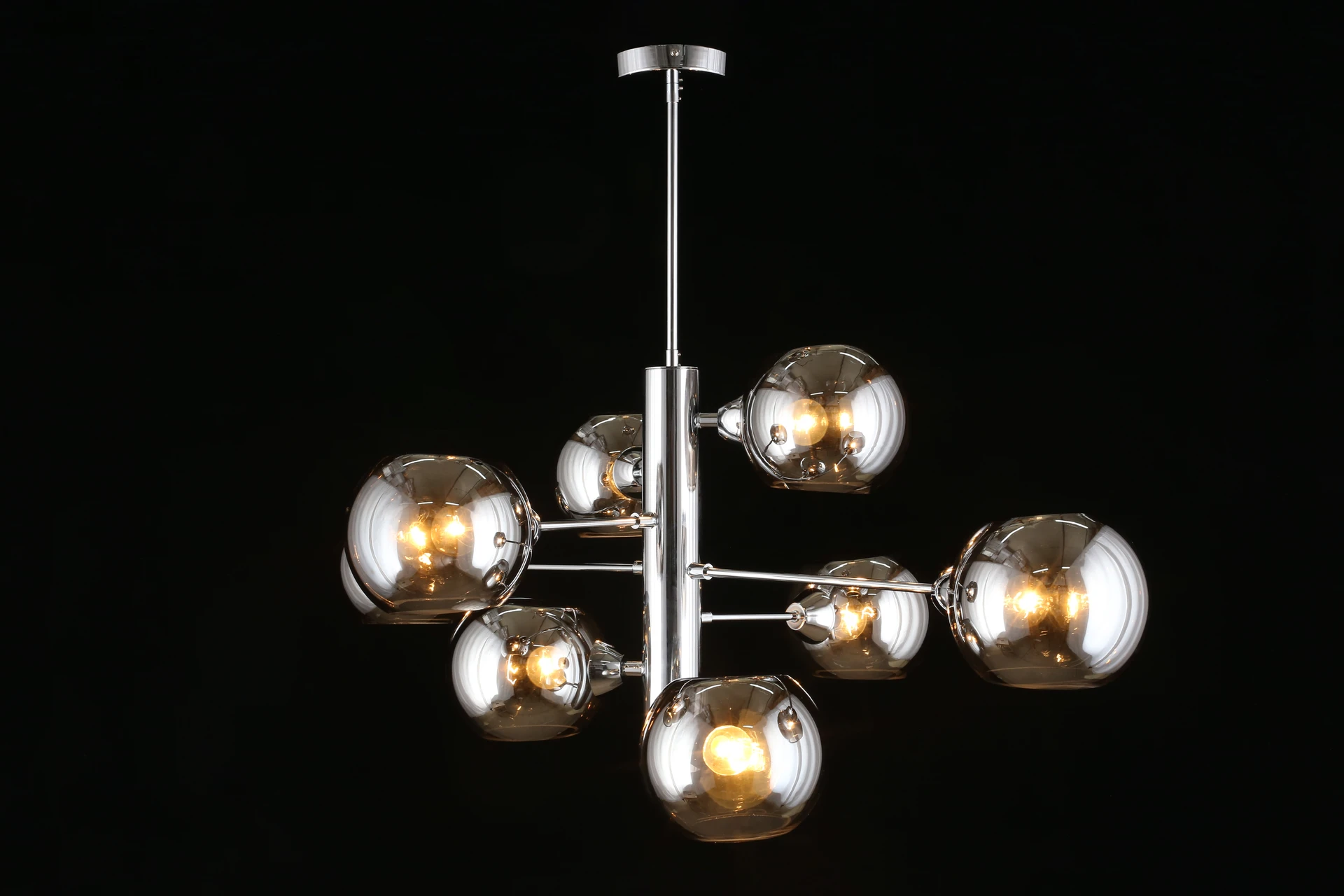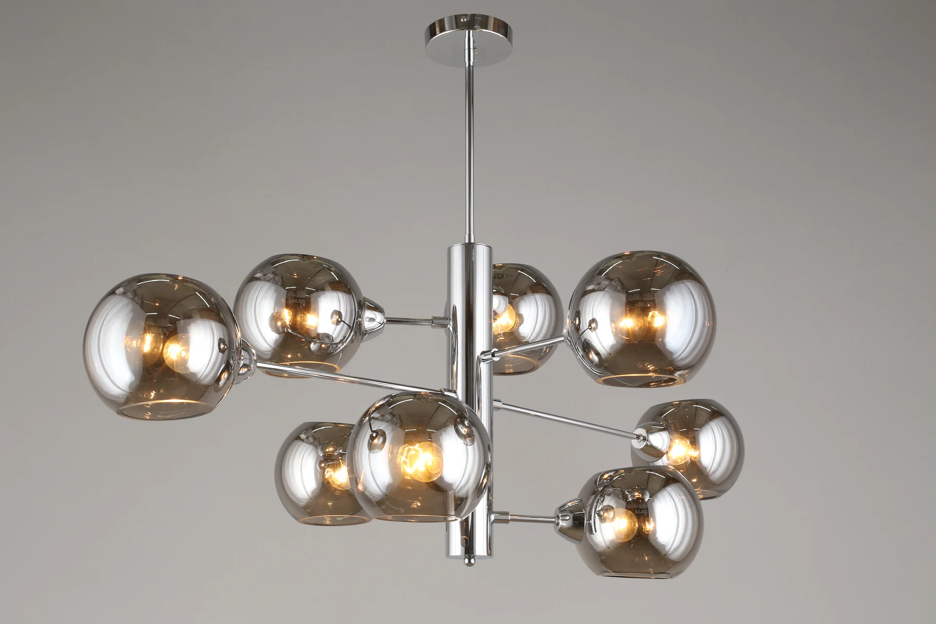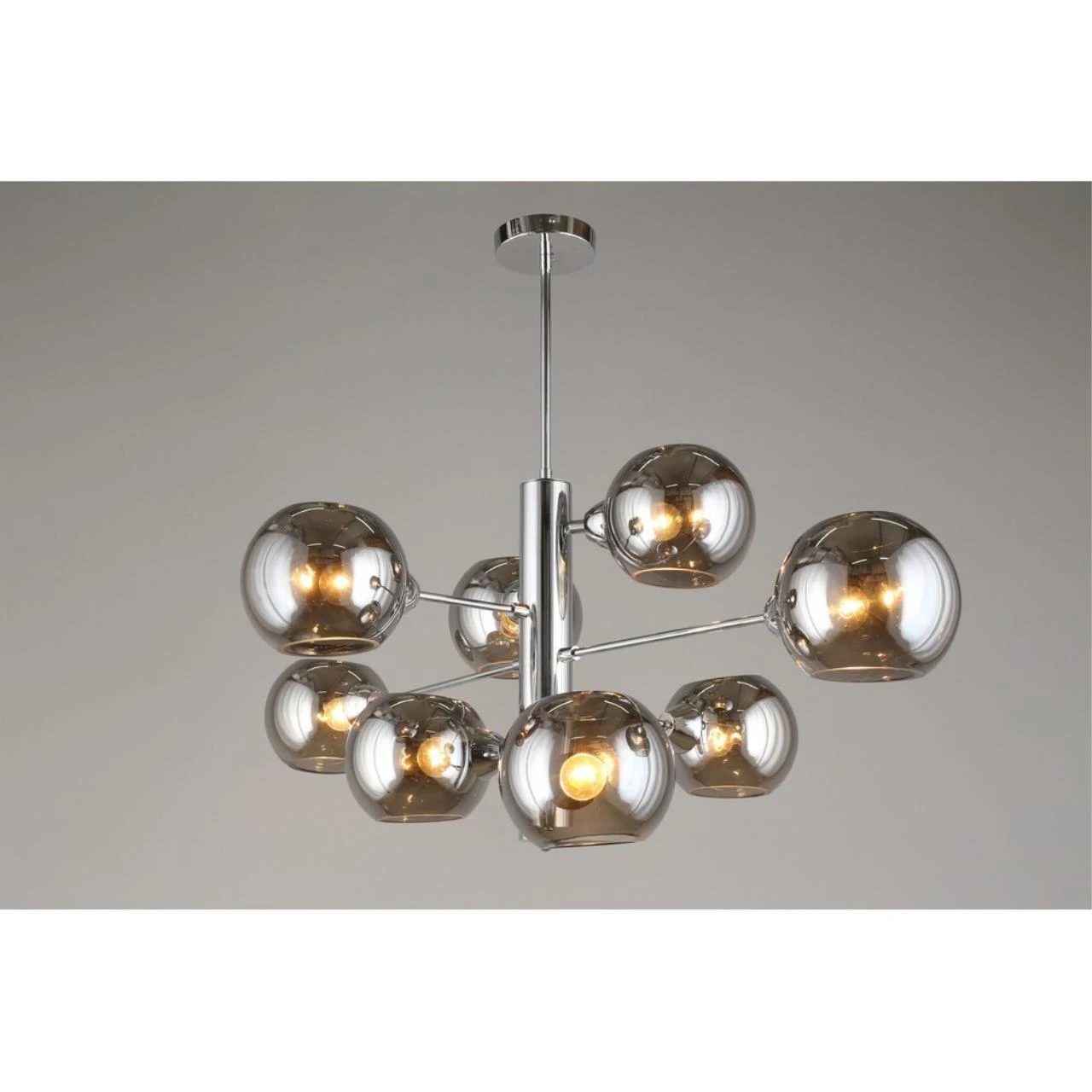 Люстра на штанге Aployt Ameli APL.904.07.08 от Aployt, подходит для гостиной, в стиле современный. Материал — металл, цвет хром, плафон из стекла, цвет плафона дымчатый, форма плафона — шар. Модель имеет 8 ламп, цоколь E14, мощность 320 Вт. Крепление — планка. Габариты: высота 980 мм, ширина 1000 мм. Коллекция Ameli, световой поток — 3360.
