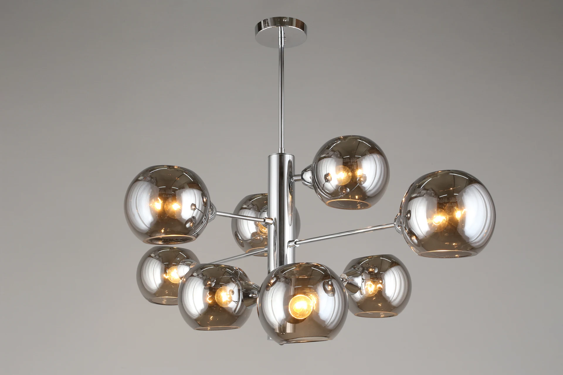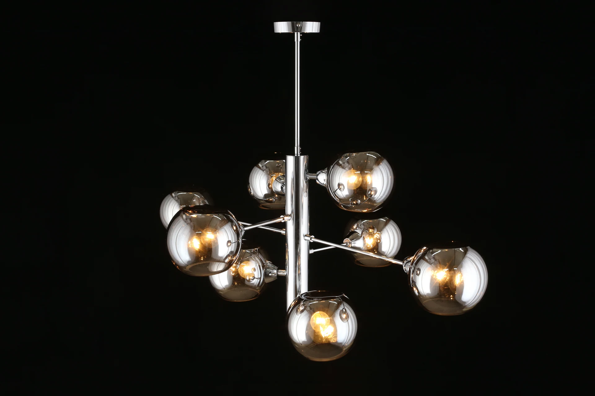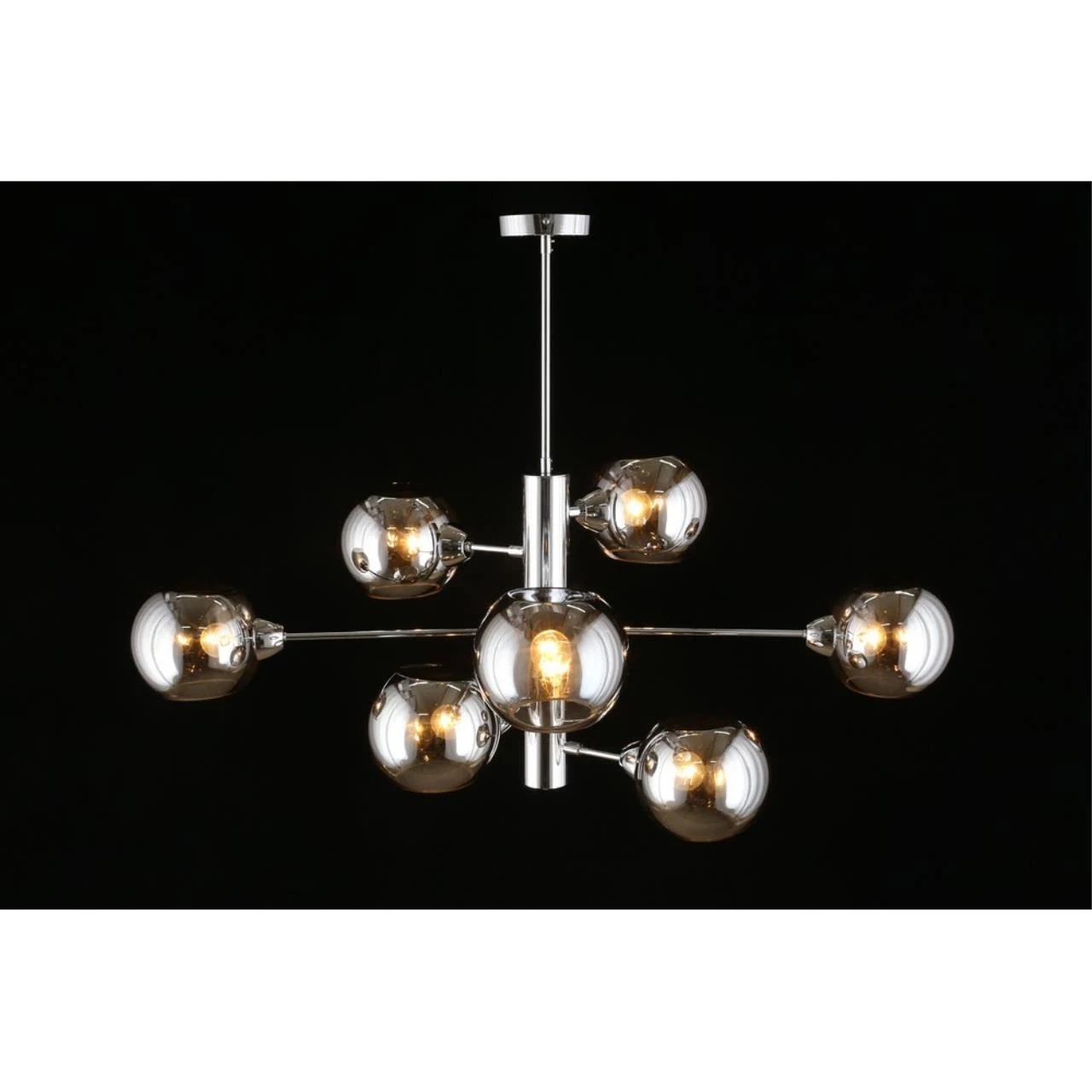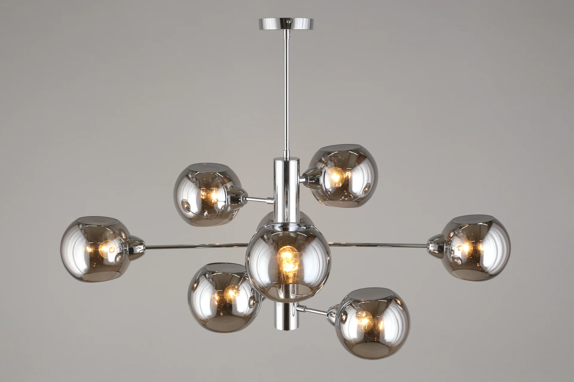 Люстра на штанге Aployt Ameli APL.904.07.08 от Aployt, подходит для гостиной, в стиле современный. Материал — металл, цвет хром, плафон из стекла, цвет плафона дымчатый, форма плафона — шар. Модель имеет 8 ламп, цоколь E14, мощность 320 Вт. Крепление — планка. Габариты: высота 980 мм, ширина 1000 мм. Коллекция Ameli, световой поток — 3360.