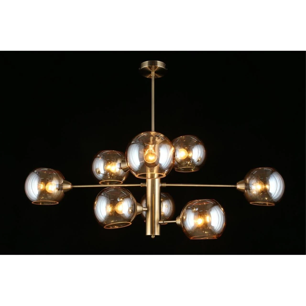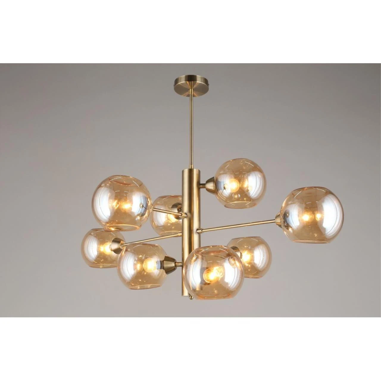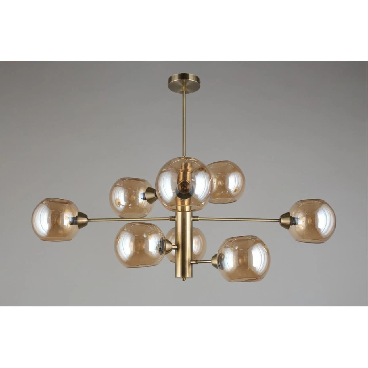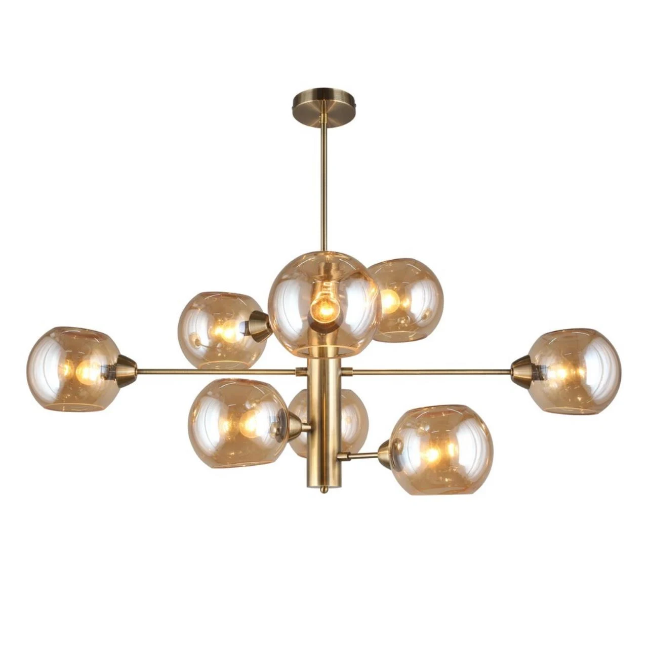Люстра на штанге Aployt Ameli APL.904.17.08 от Aployt, подходит для гостиной, в стиле современный. Материал — металл, цвет латунь, плафон из стекла, цвет плафона янтарный, форма плафона — шар. Модель имеет 8 ламп, цоколь E14, мощность 320 Вт. Крепление — планка. Габариты: высота 980 мм, ширина 1000 мм. Коллекция Ameli, световой поток — 3360.