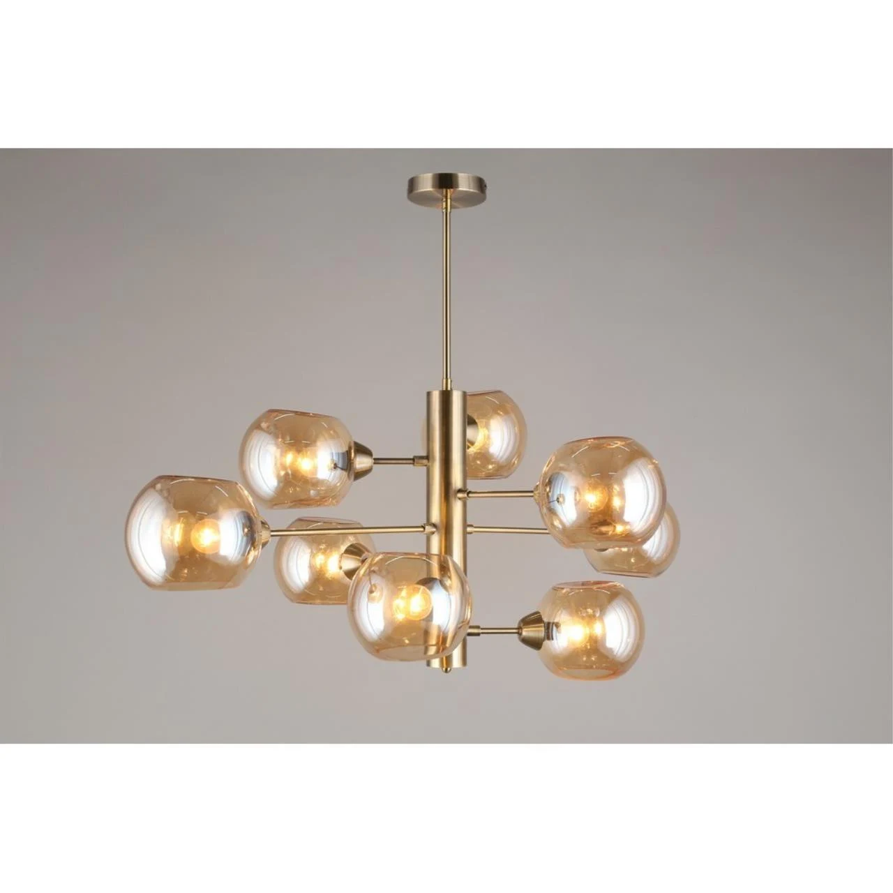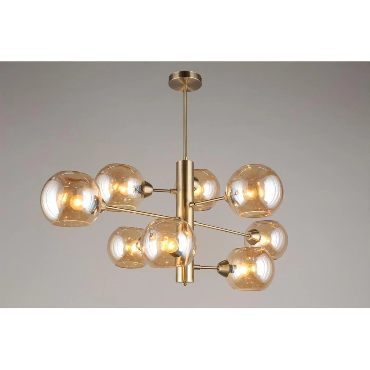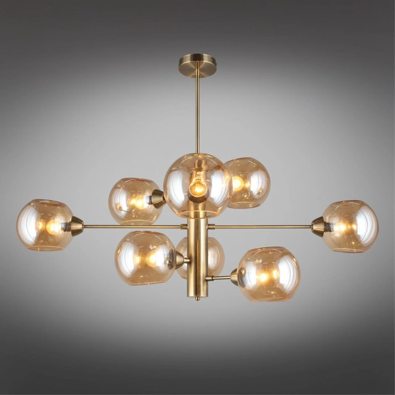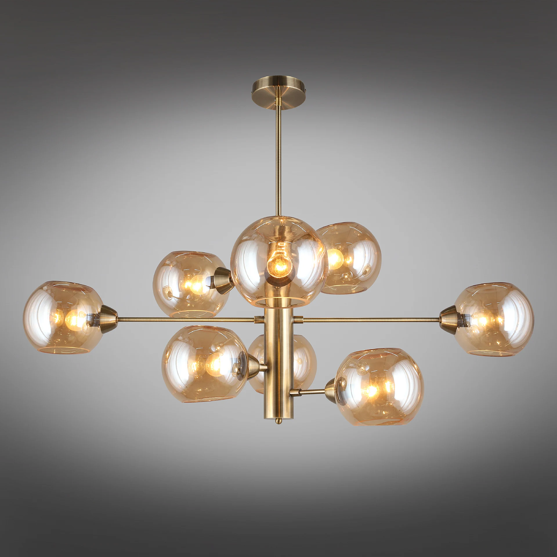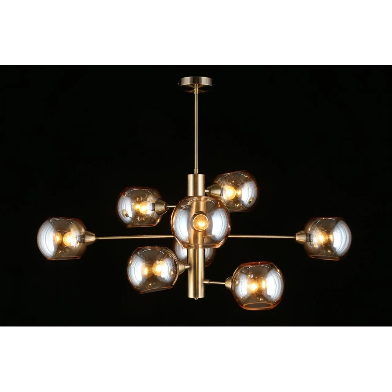 Люстра на штанге Aployt Ameli APL.904.17.08 от Aployt, подходит для гостиной, в стиле современный. Материал — металл, цвет латунь, плафон из стекла, цвет плафона янтарный, форма плафона — шар. Модель имеет 8 ламп, цоколь E14, мощность 320 Вт. Крепление — планка. Габариты: высота 980 мм, ширина 1000 мм. Коллекция Ameli, световой поток — 3360.