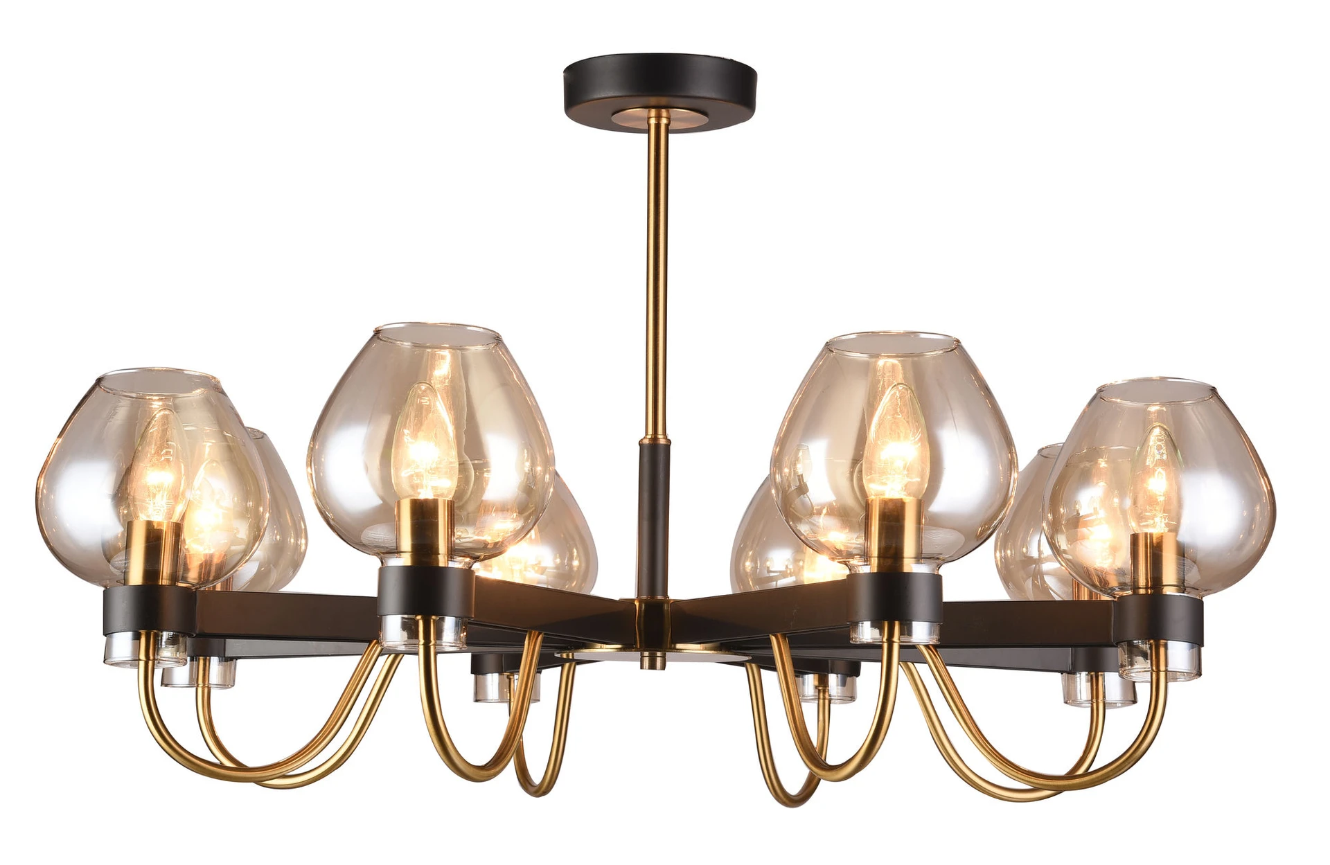 Люстра на штанге Freya Tara FR5028PL-08B от Freya, подходит для гостиной, в стиле лофт. Материал — металл, цвет черный, плафон из стекла, цвет плафона янтарный, форма плафона — шар. Модель имеет 8 ламп, цоколь E14, мощность 60 Вт. Направление света — вверх, крепление — планка. Степень защиты IP20. Габариты: высота 440 мм, диаметр 750 мм. Коллекция Tara.
