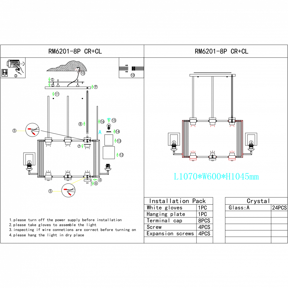 На Люстра на штанге iLamp King RM6201-8P CR+CL от Ilamp действует официальная гарантия производителя — от 2 лет и более. По вопросам гарантии в Беларуси обращайтесь по телефону +375 (29) 801 91 06 или на info@marketsveta.by.