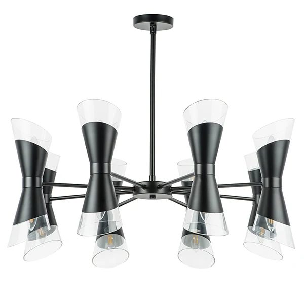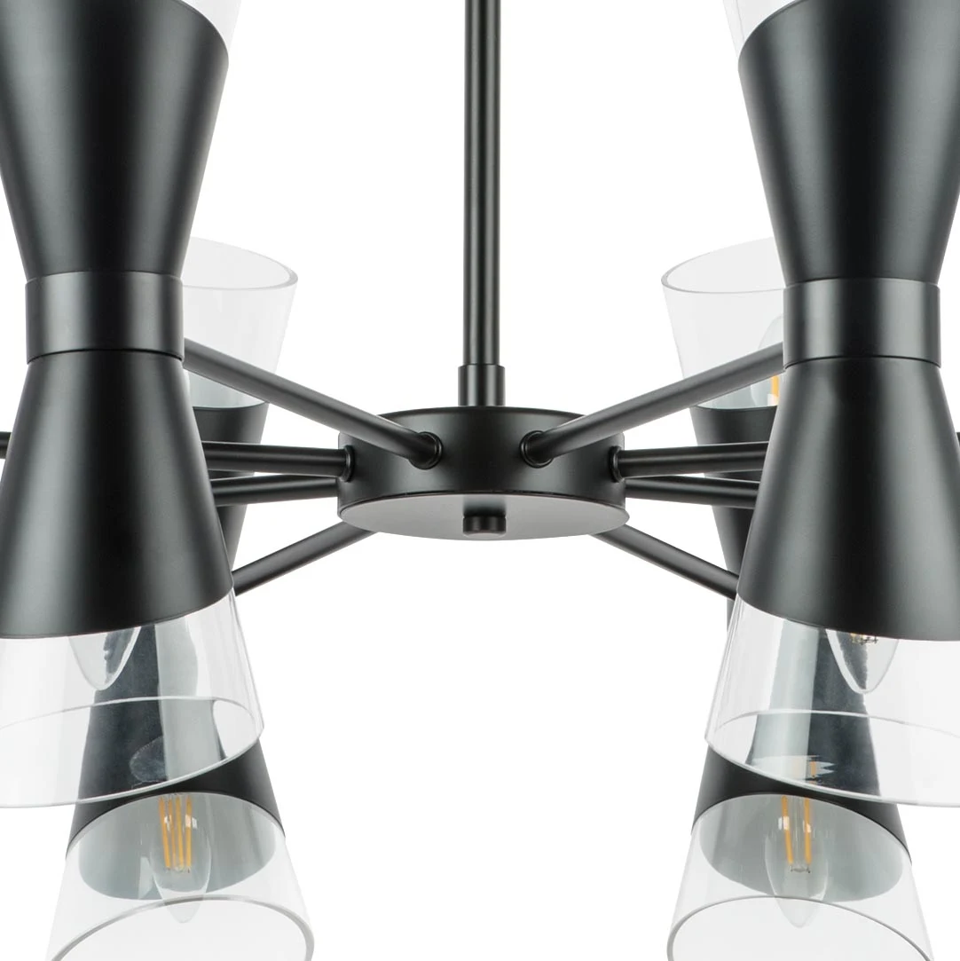 Люстра на штанге Lightstar Strato 817167 от Lightstar, подходит для спальни. Материал — металл, цвет черный матовый, плафон из стекла, цвет плафона прозрачный, форма плафона — круглый плафон. Модель имеет 16 ламп, цоколь E14, мощность 640 Вт. Габариты: высота 1335 мм, ширина 900 мм, диаметр 900 мм.